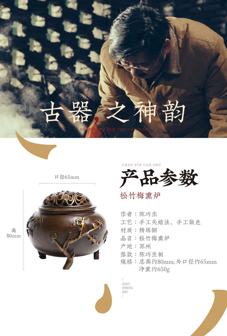 已售罄!陈巧生 新品<松竹梅熏炉>精品铜炉