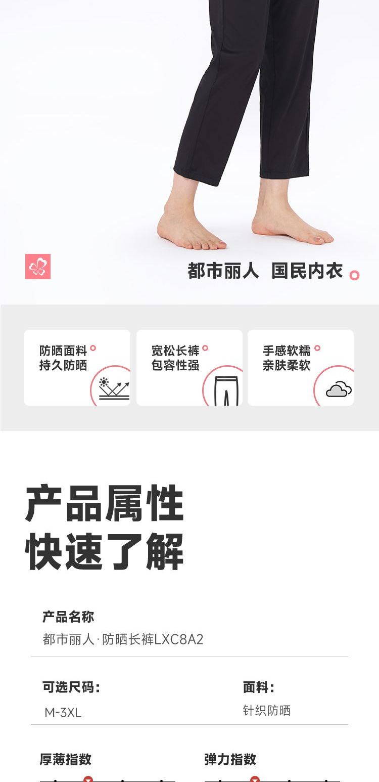 都市丽人防晒长裤薄针织防晒防晒品女士防晒长裤直筒裤可外穿LXC8A2