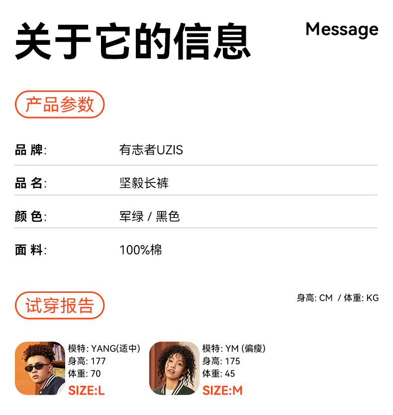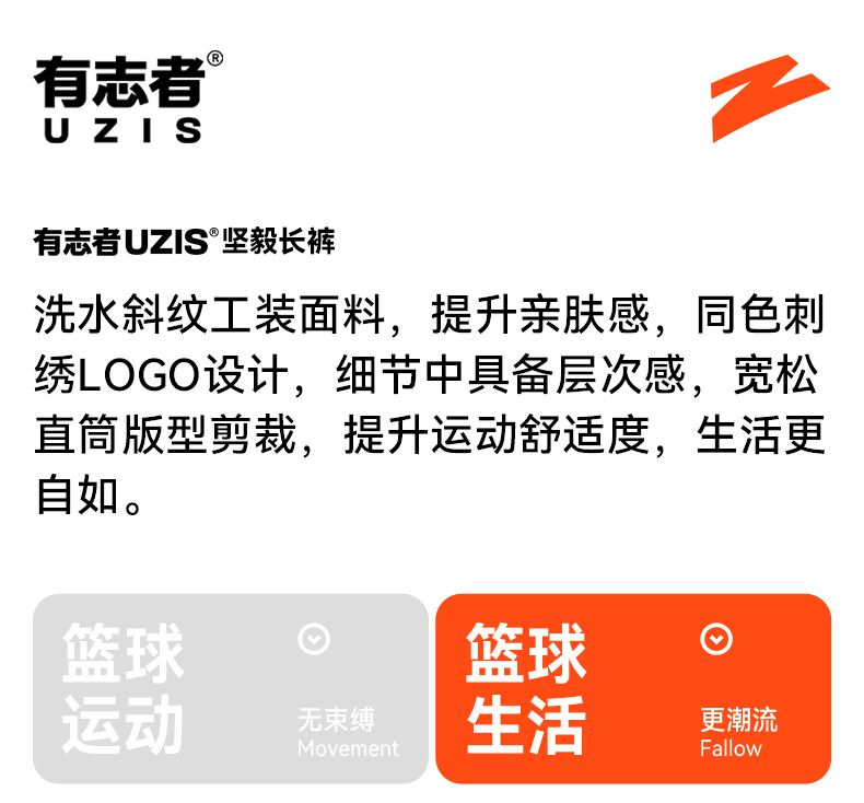 有志者UZIS美式运动长裤男篮球跑步直筒裤休闲宽松复古工装裤坚毅