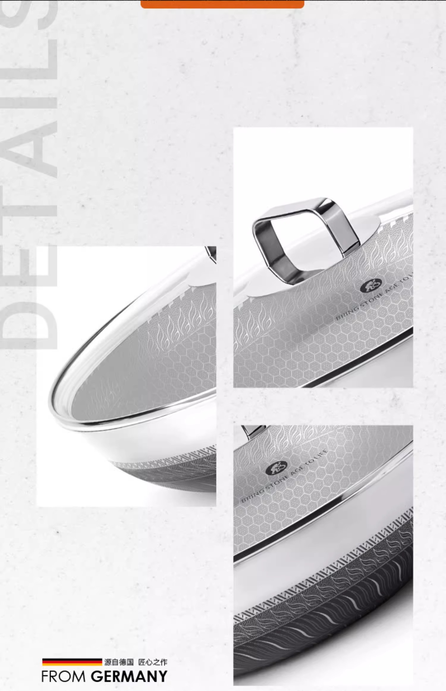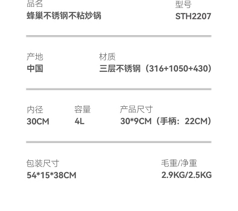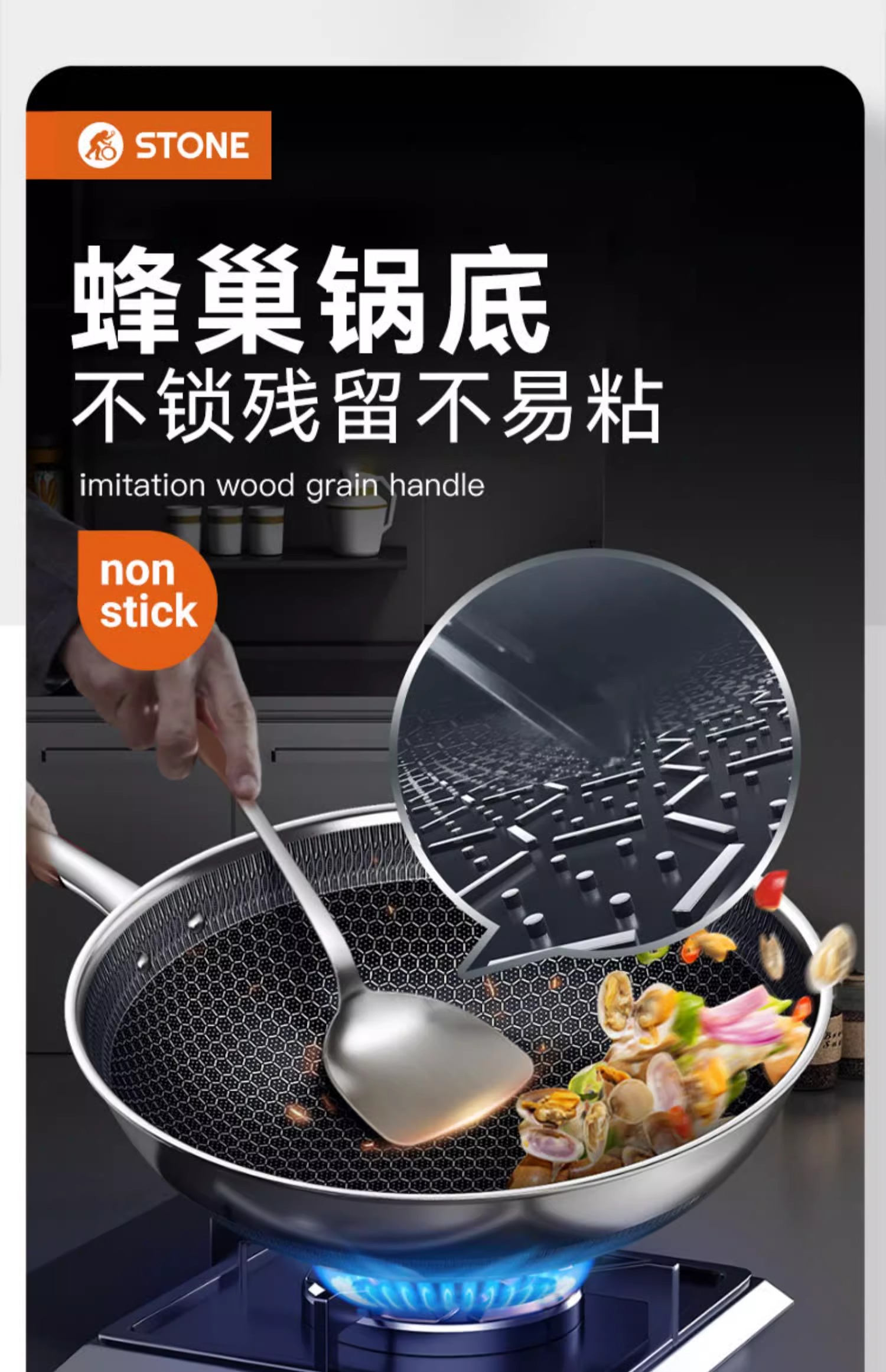 【自营】司顿-蜂巢不锈钢不粘炒锅 银色