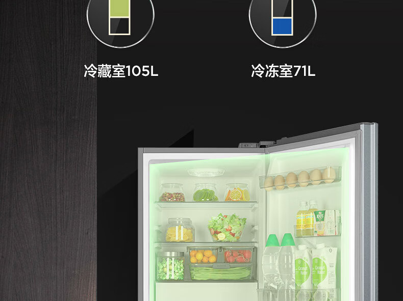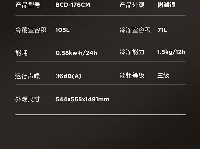 美的(Midea)176升小型两门双开门租房家用小电冰箱自动低温补偿节能低音持久锁冷BCD-176CM 榭湖银 BCD-176CM
