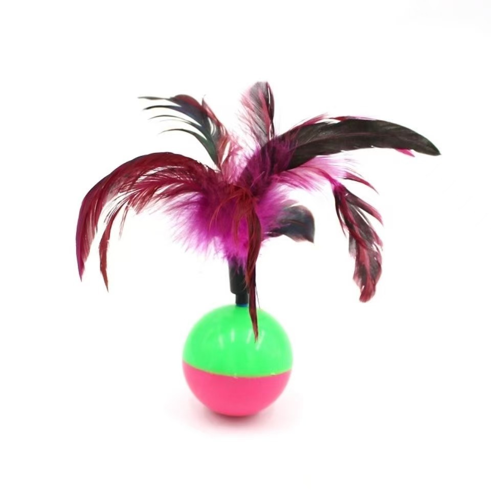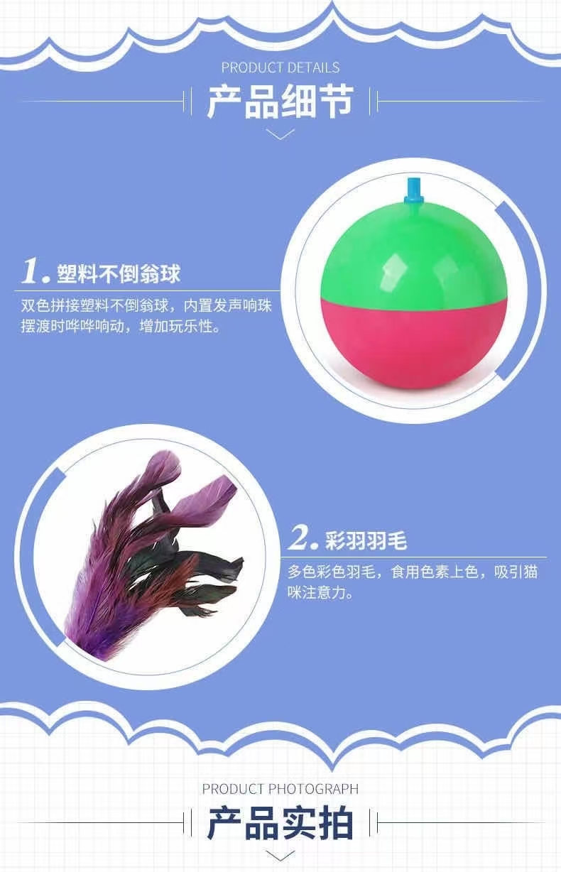 鸡毛不倒翁猫玩具 跨境猫玩具不倒翁羽毛 益智猫玩具逗猫羽毛1/个