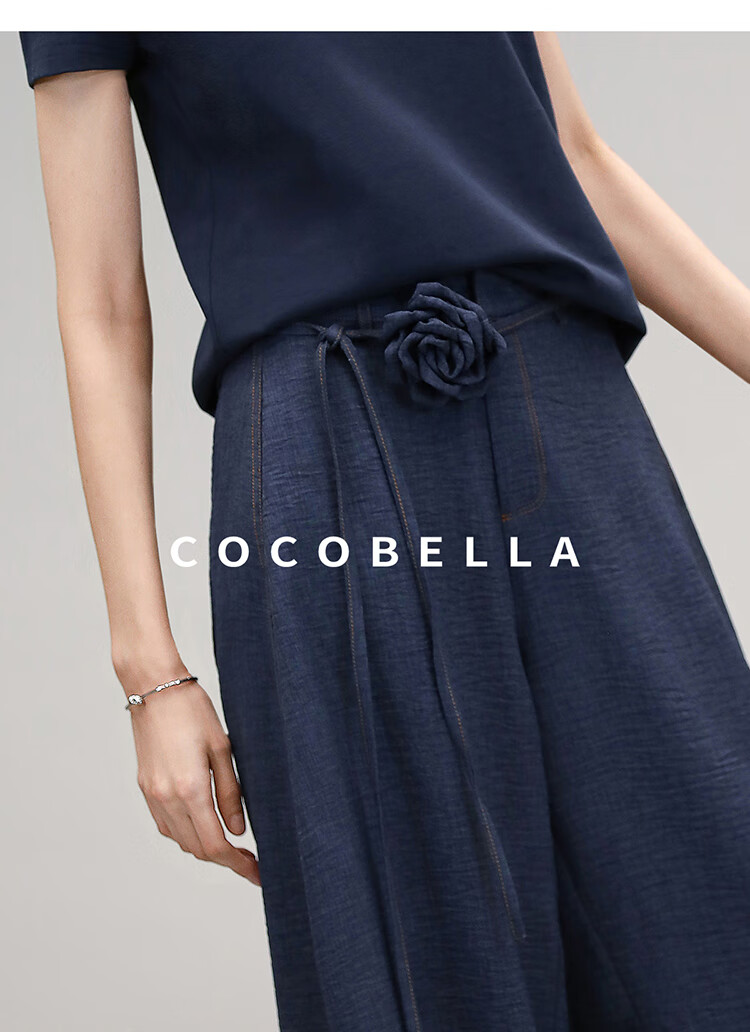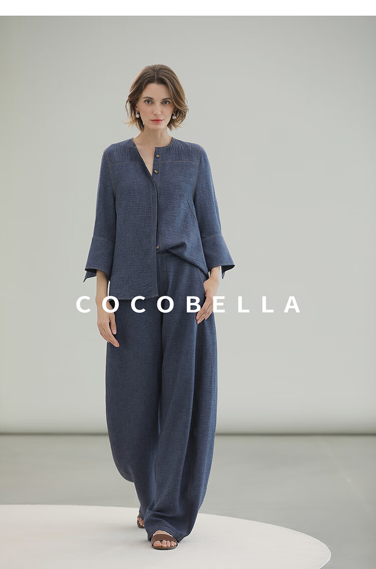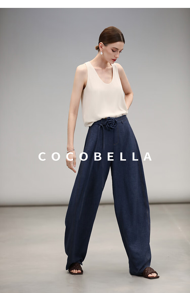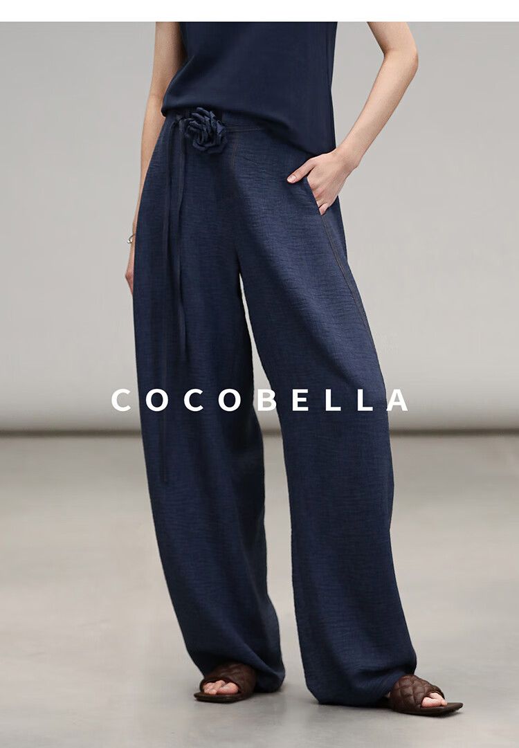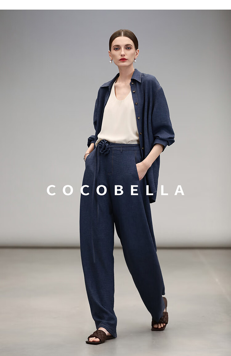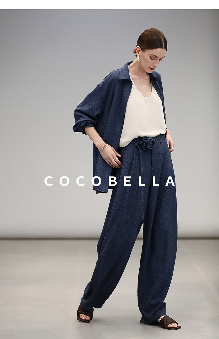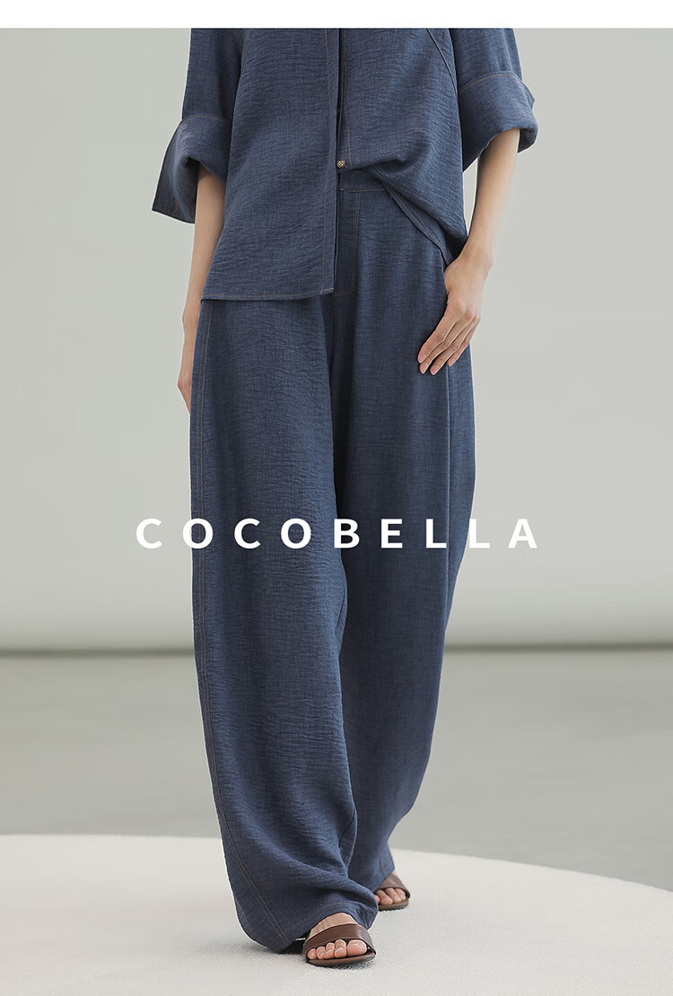 COCOBELLA牛仔色褶皱肌理休闲裤女春夏宽松直筒镰刀裤PA3076
