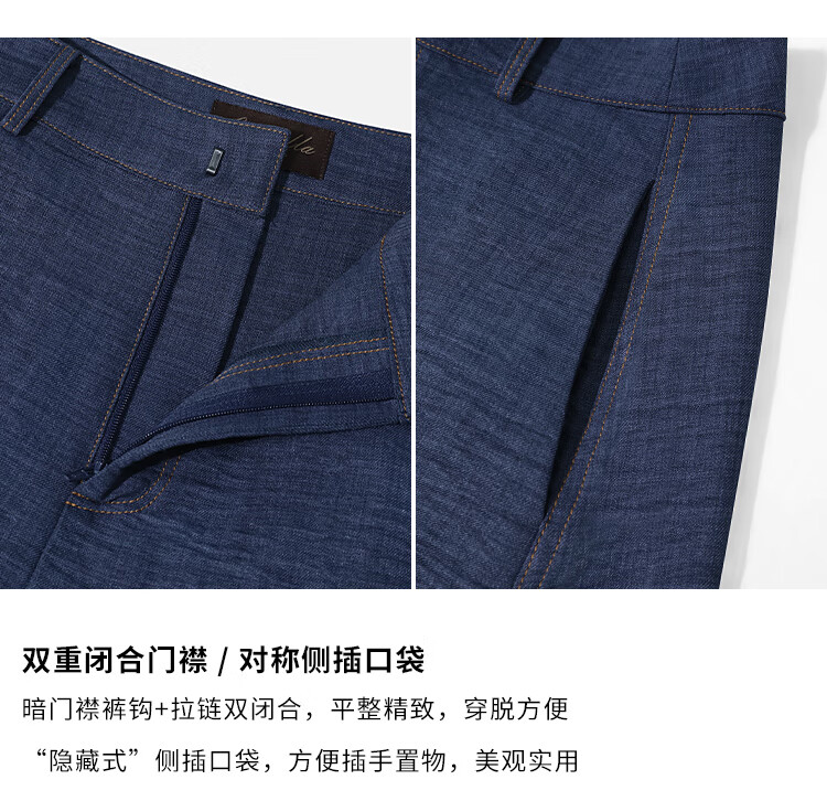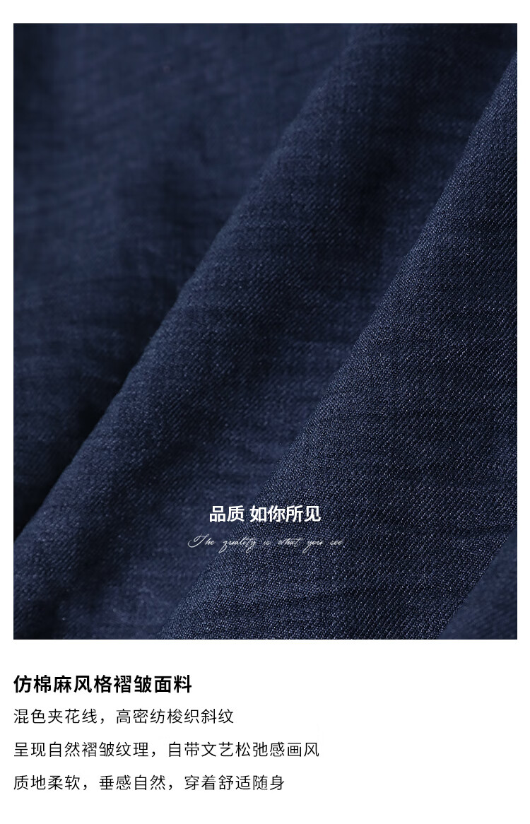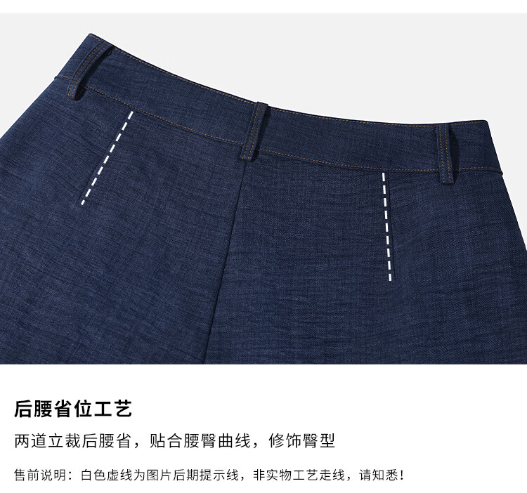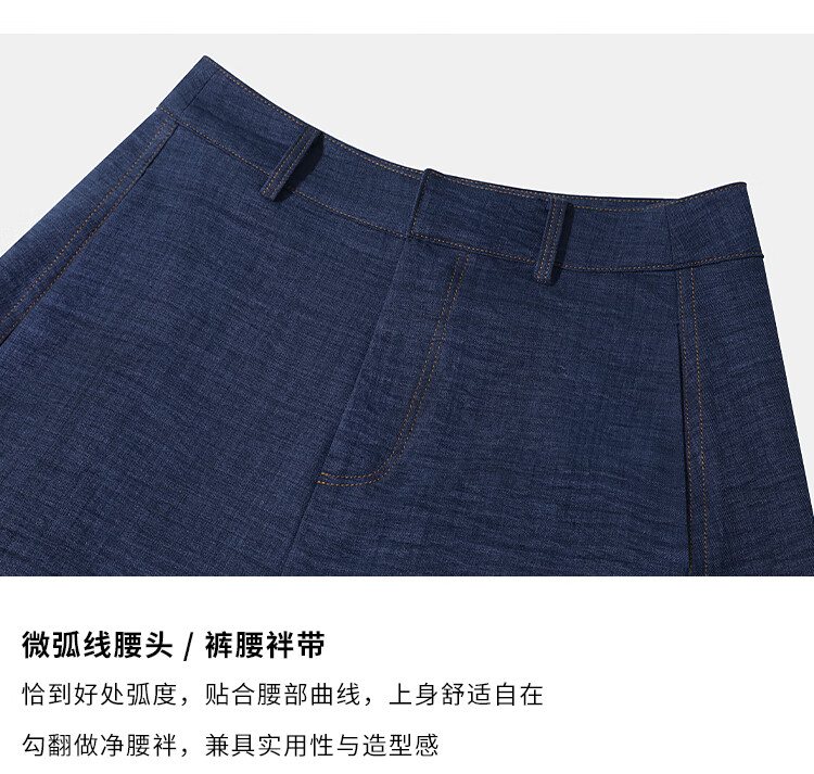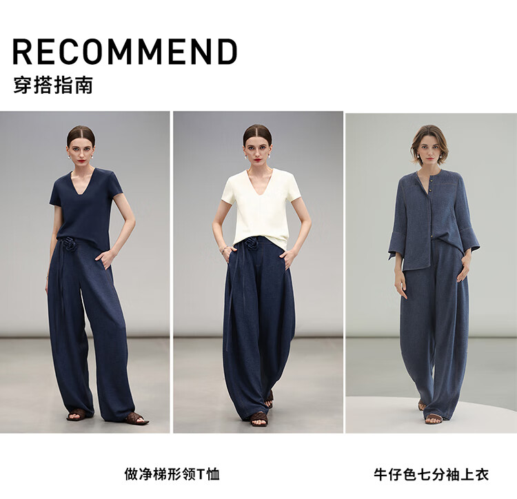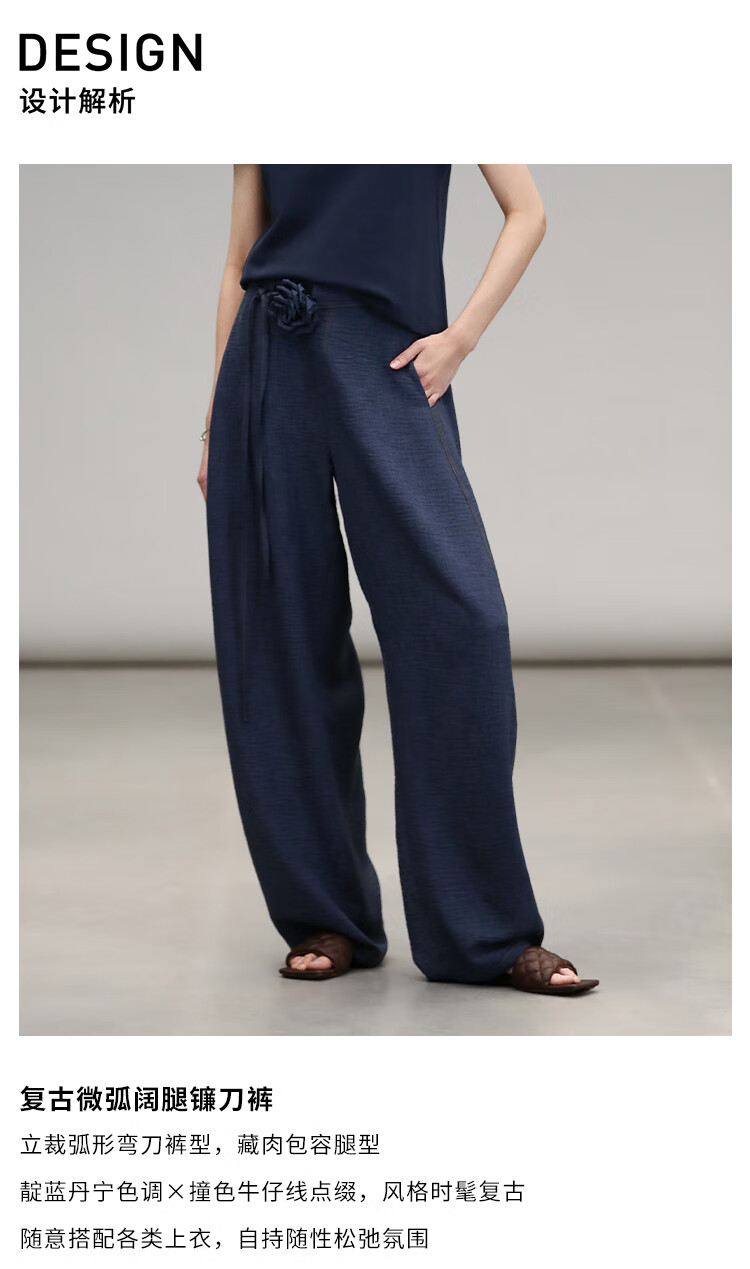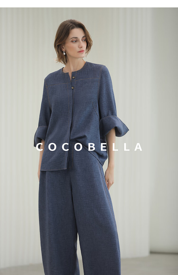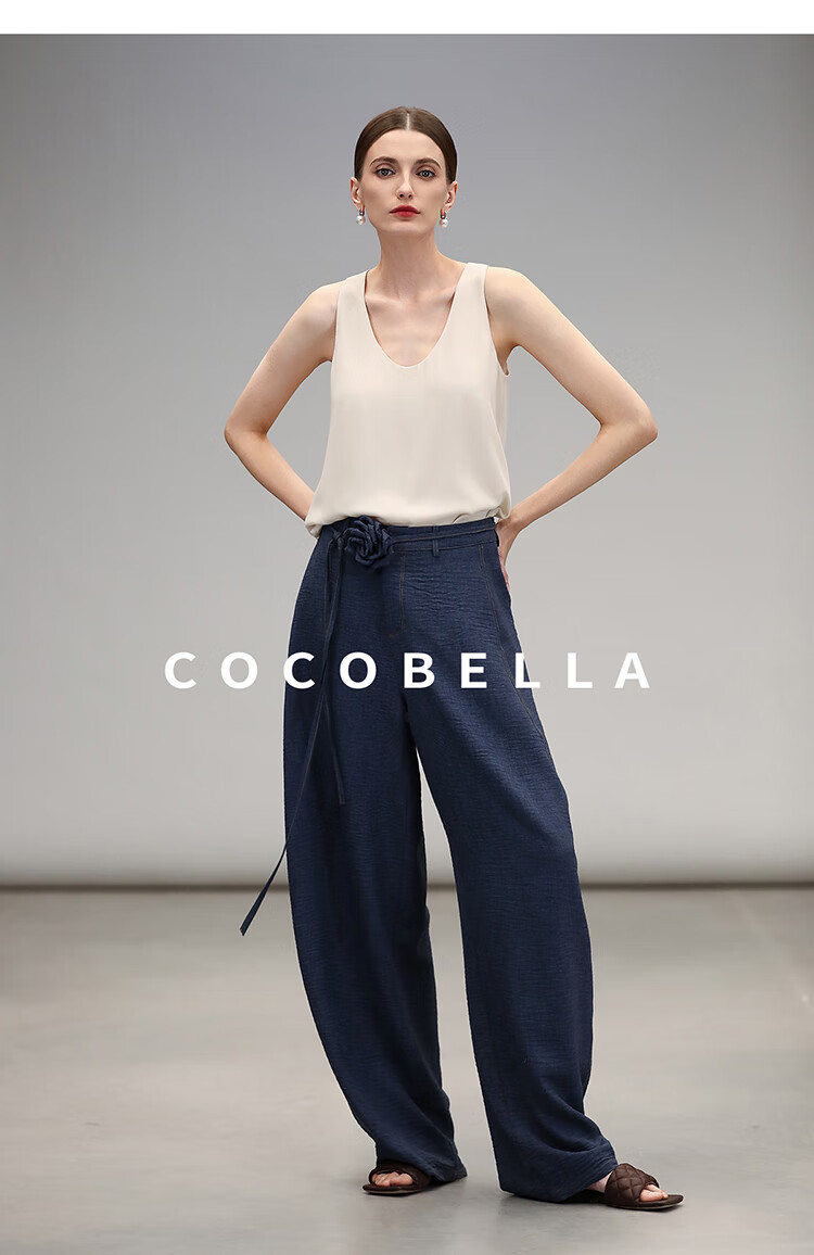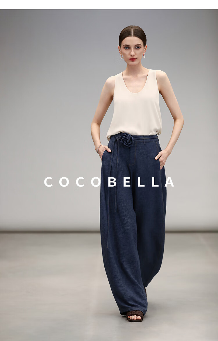 COCOBELLA牛仔色褶皱肌理休闲裤女春夏宽松直筒镰刀裤PA3076