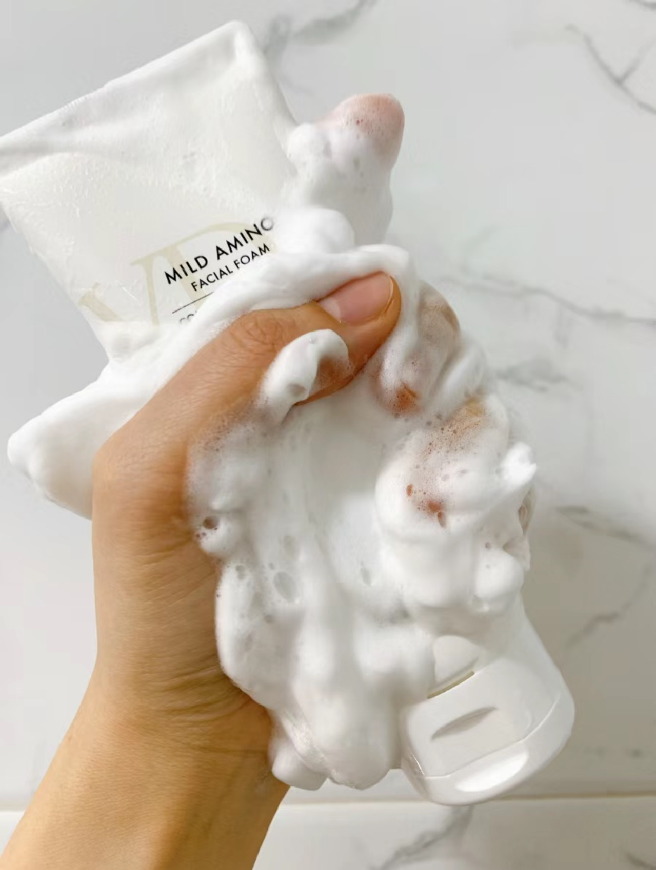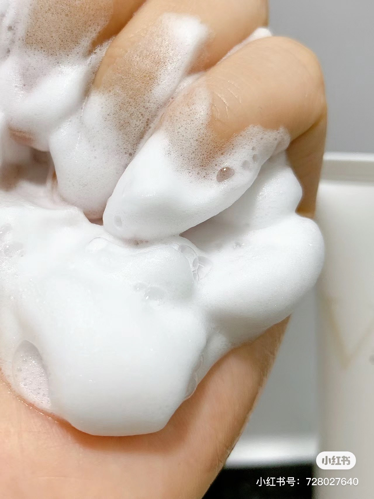 💯100 %的氨基酸泡沫,泡沫是那种很扎实很丰富的,有点像奶盖,🧋上脸很舒服,很温和的感觉。