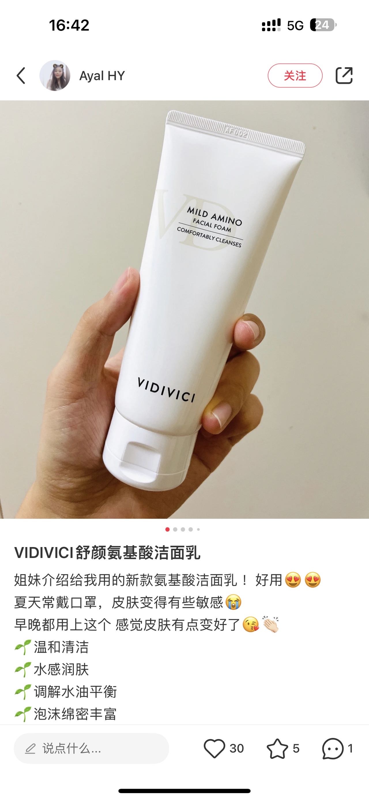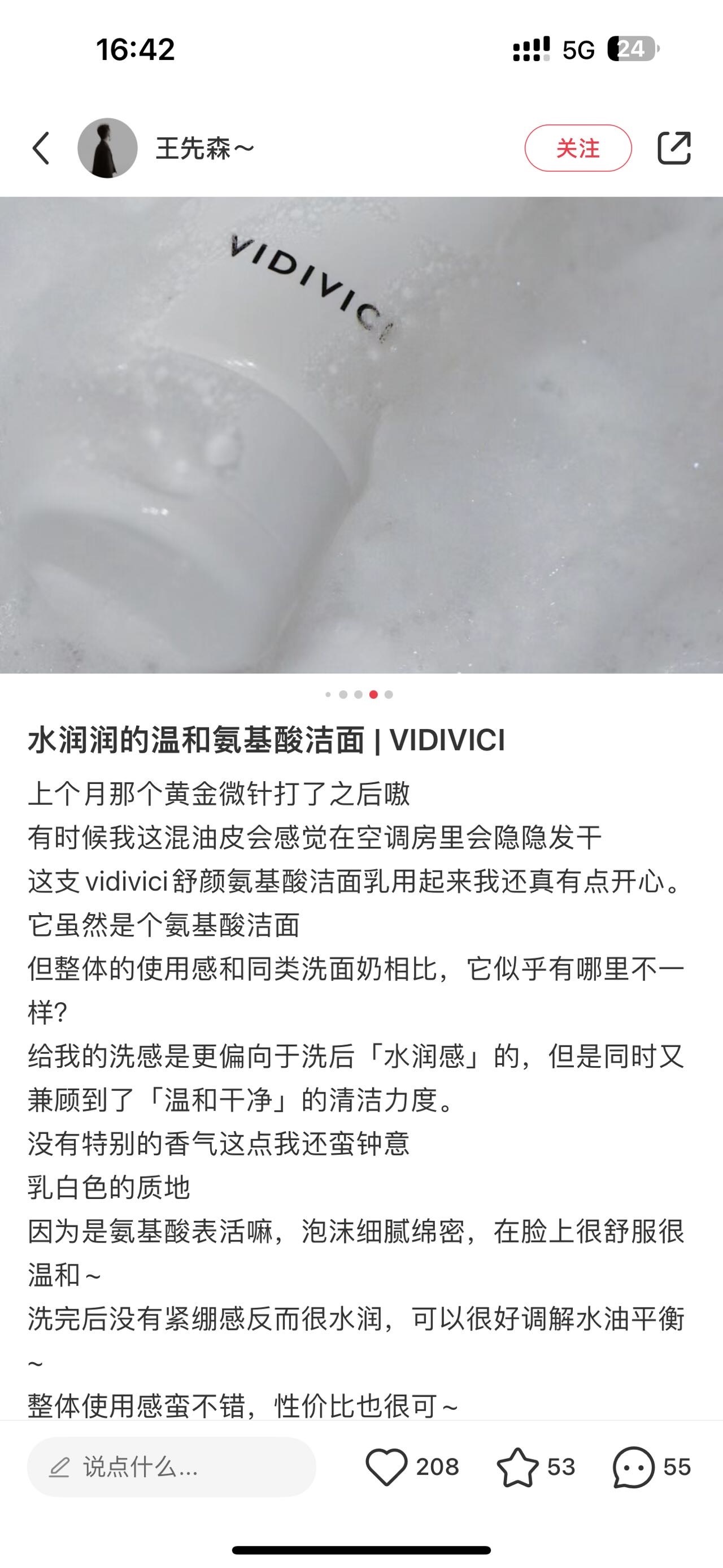 ✅VIDIVICI舒颜氨基酸洁面乳hin好用