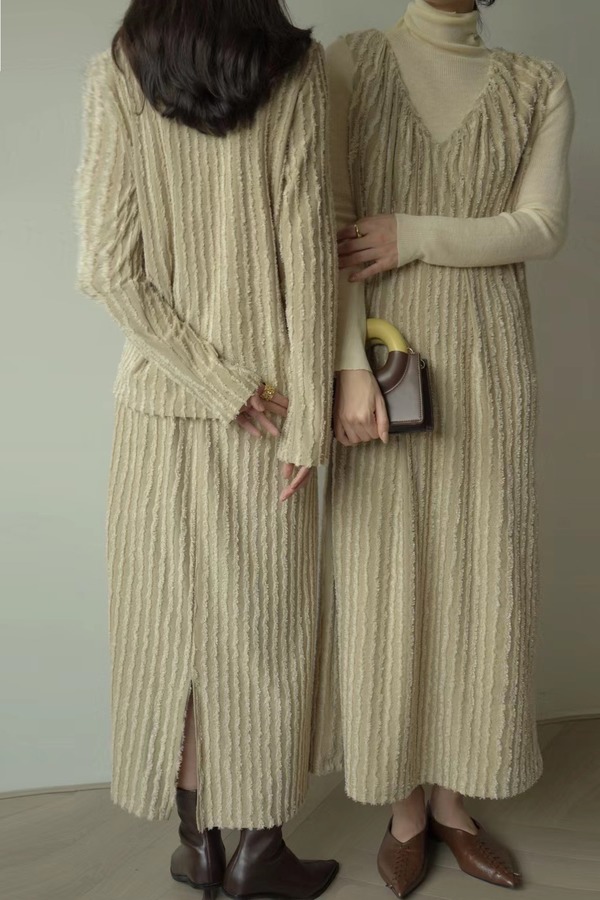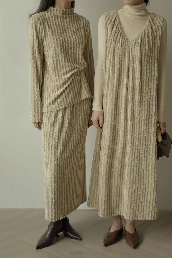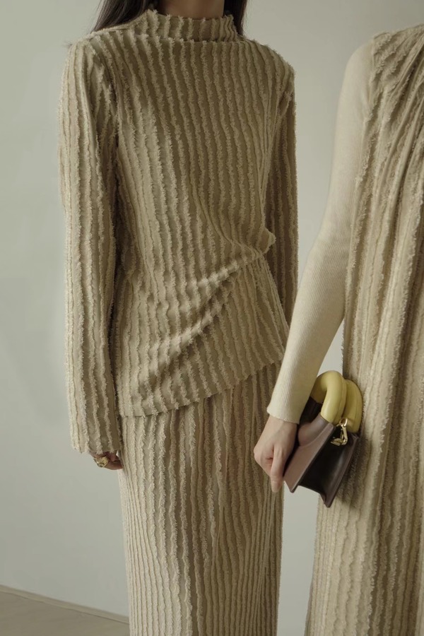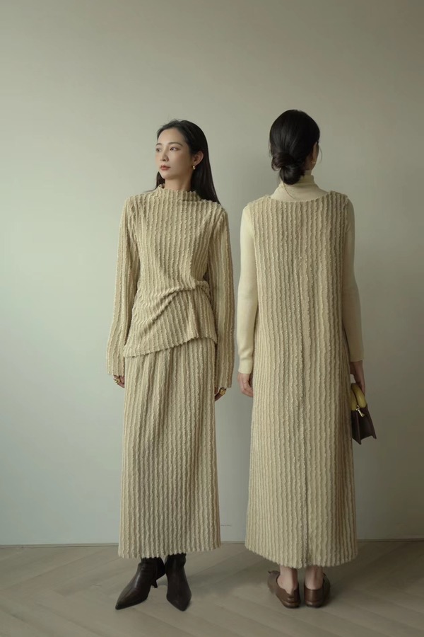Le Malene 浅卡其高级肌理感半裙套装 17587