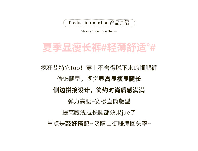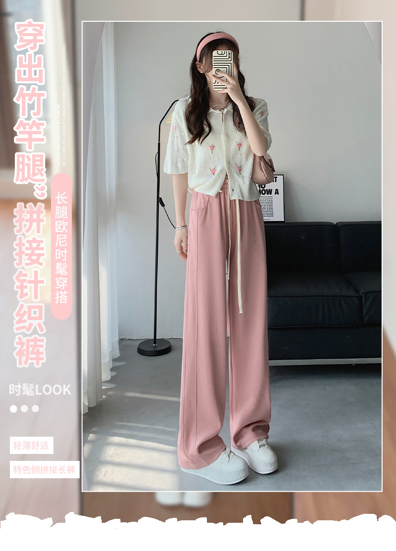 【潮流百搭!五色可选!!!】夏季新款女士针织侧拼接阔腿裤,高腰抽绳口袋设计,宽松舒适,薄款垂感,百搭休闲裤。时尚女性的必备单品,紧贴流行趋势,时尚潮流百搭,适合多种场合穿着!