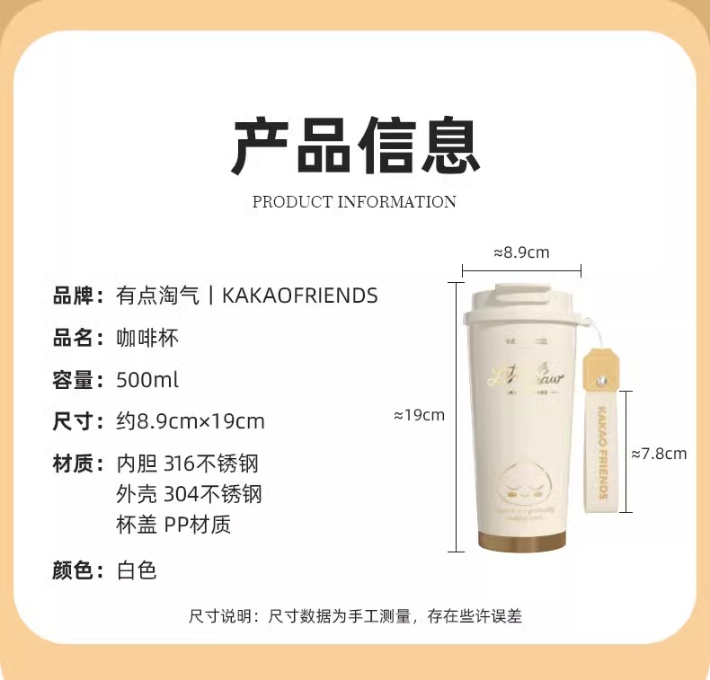 KAKAOFRIENDS 316不锈钢拉伸烫金水贴工艺 户外吊带咖啡杯