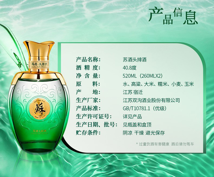 双沟 头排苏酒 40.8° 浓香型白酒 260ml*2瓶装(整箱为4盒)