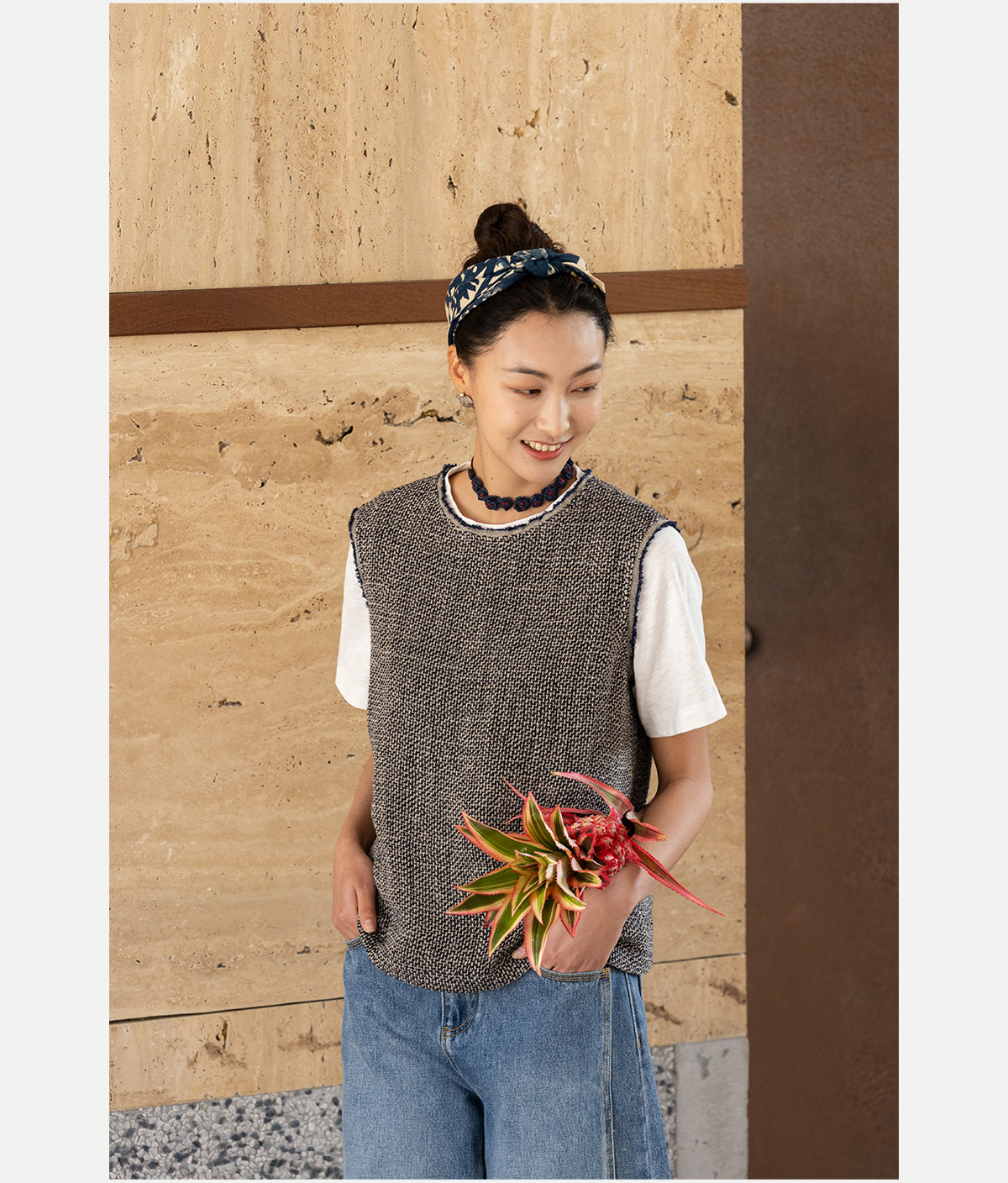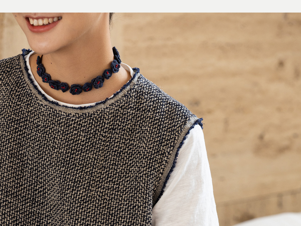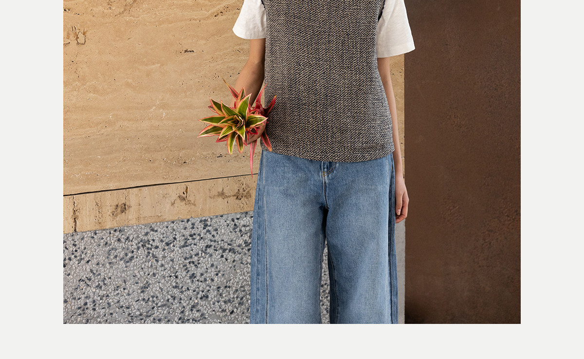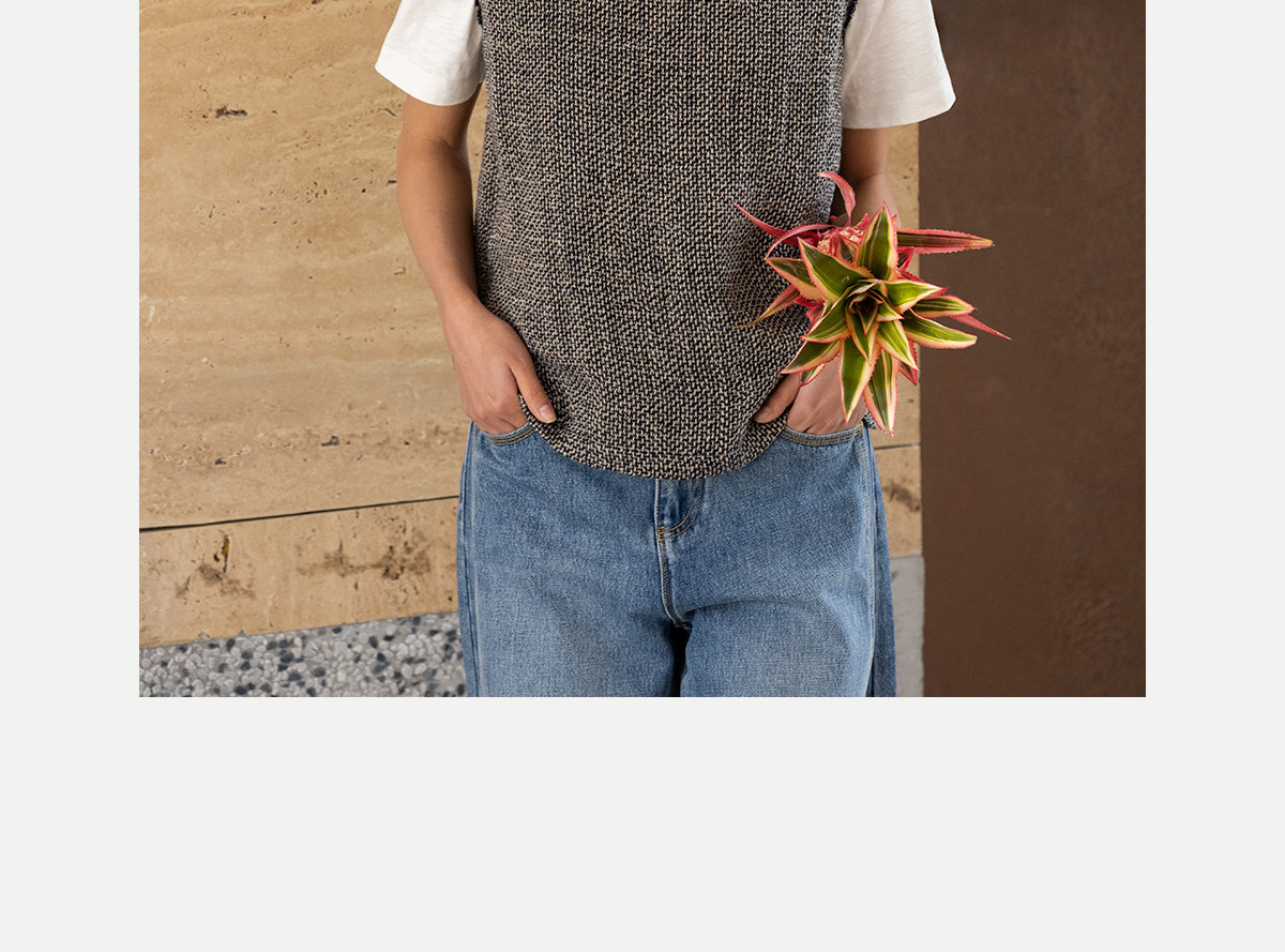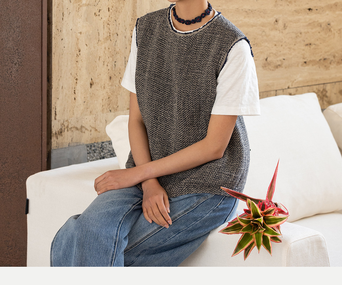 牧衣游原创 精细亚麻马夹女新款质朴肌理文艺圆领套头上衣 欣语