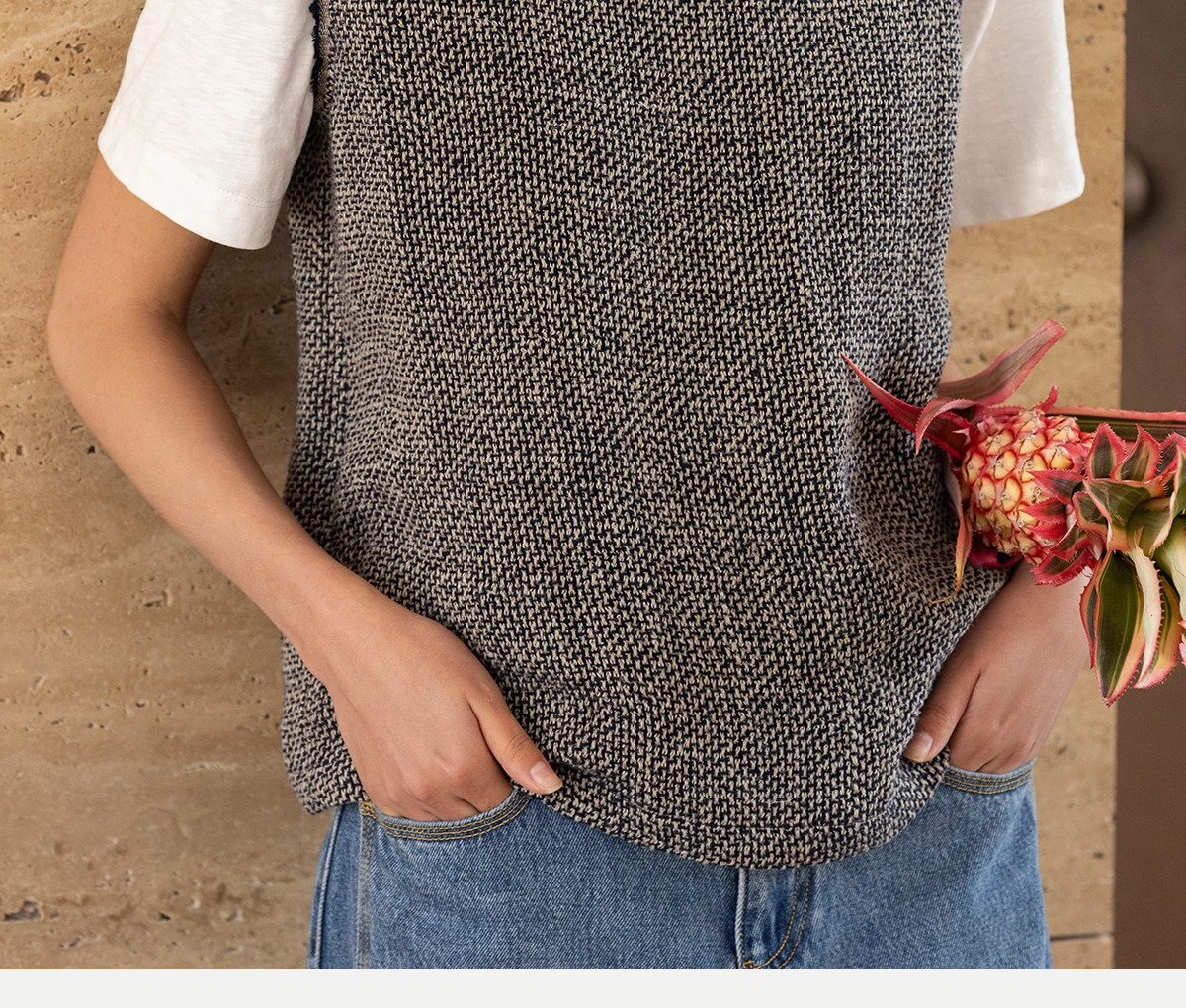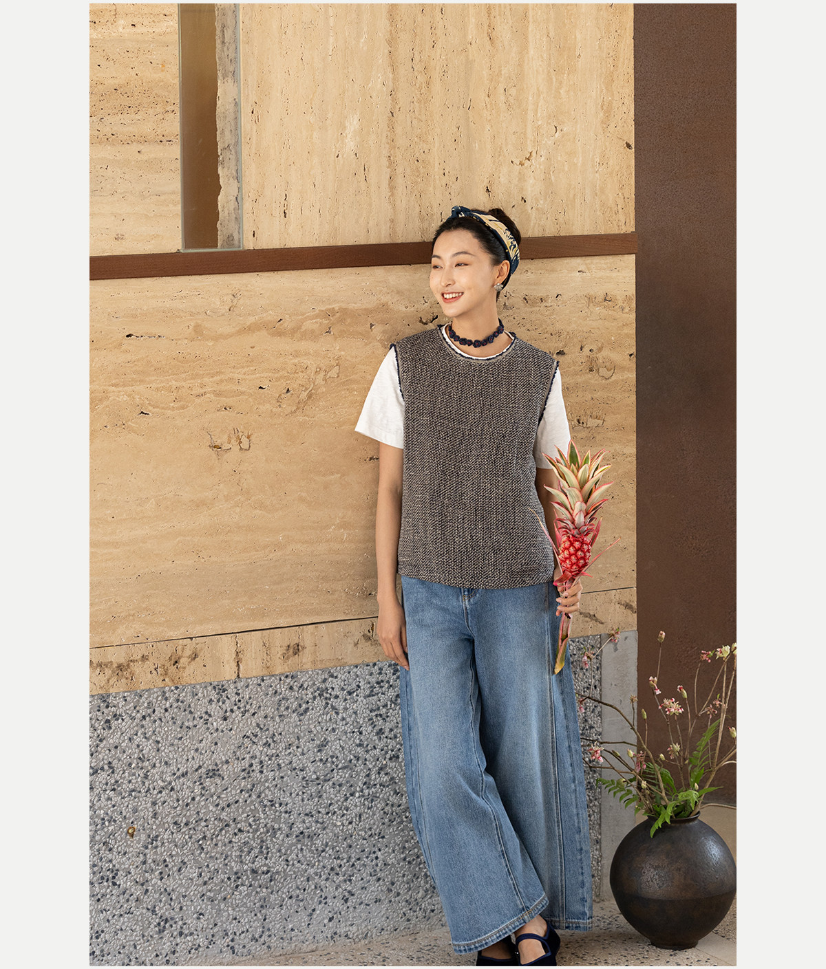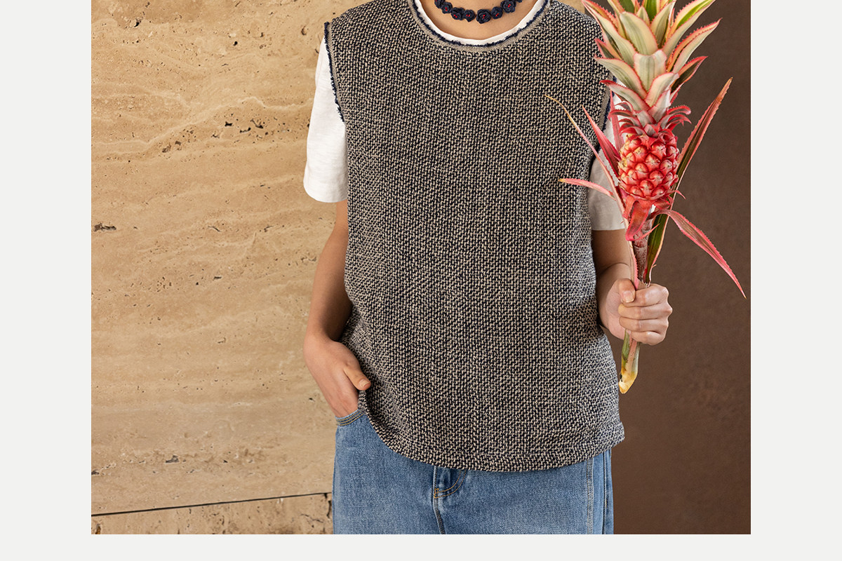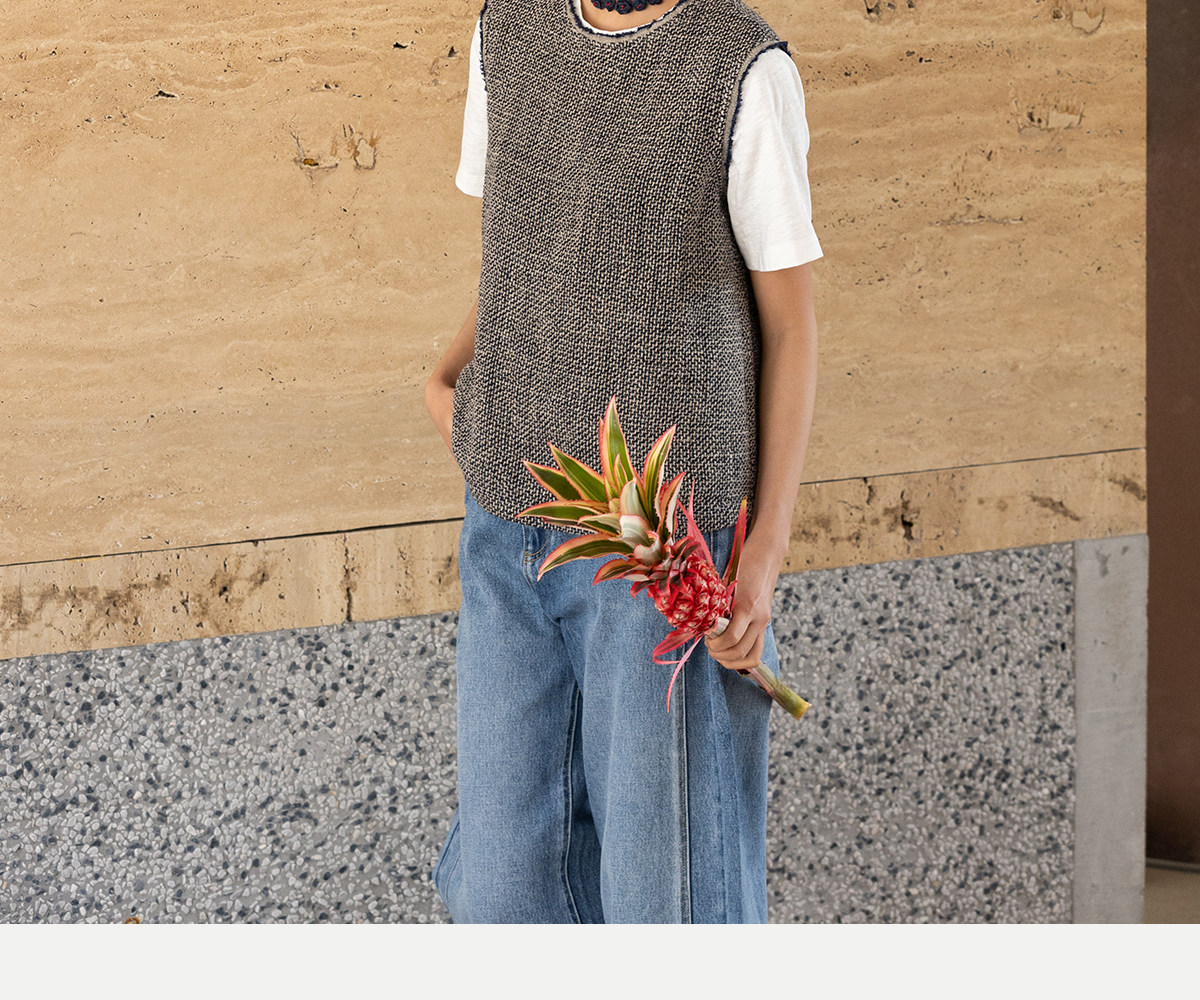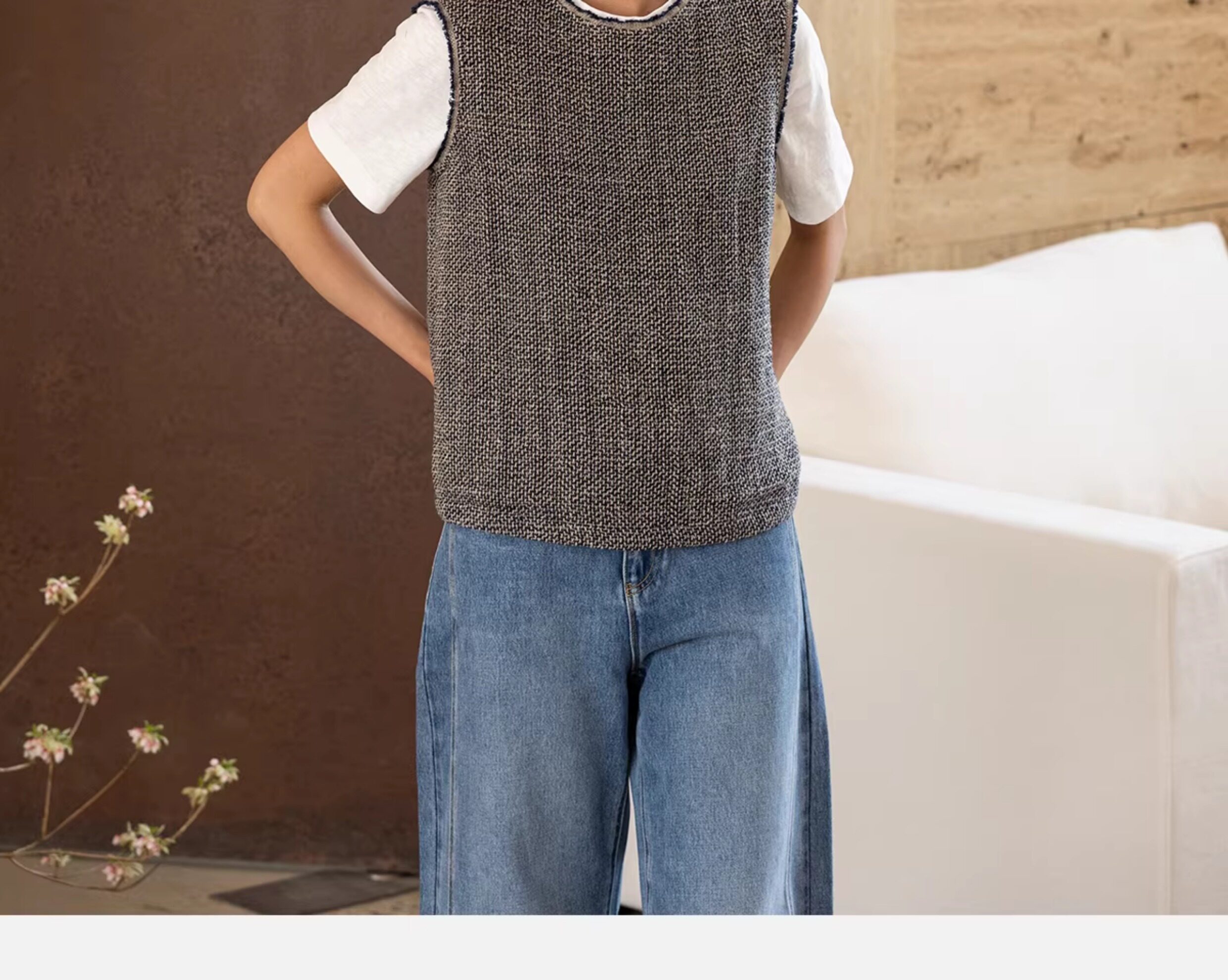 牧衣游原创 精细亚麻马夹女新款质朴肌理文艺圆领套头上衣 欣语
