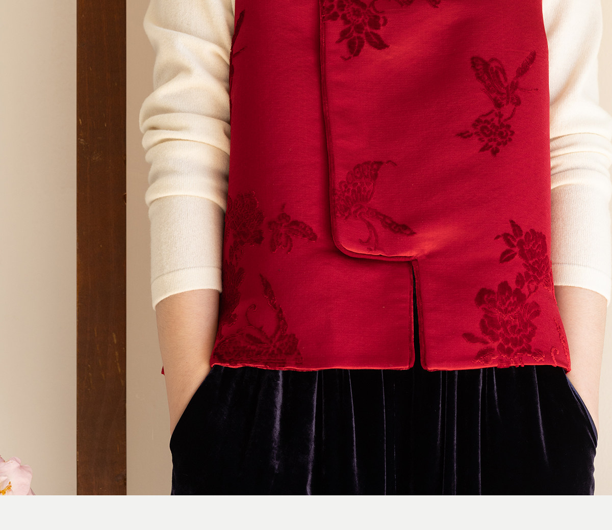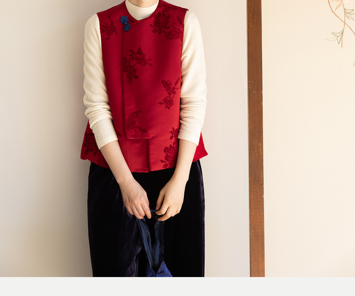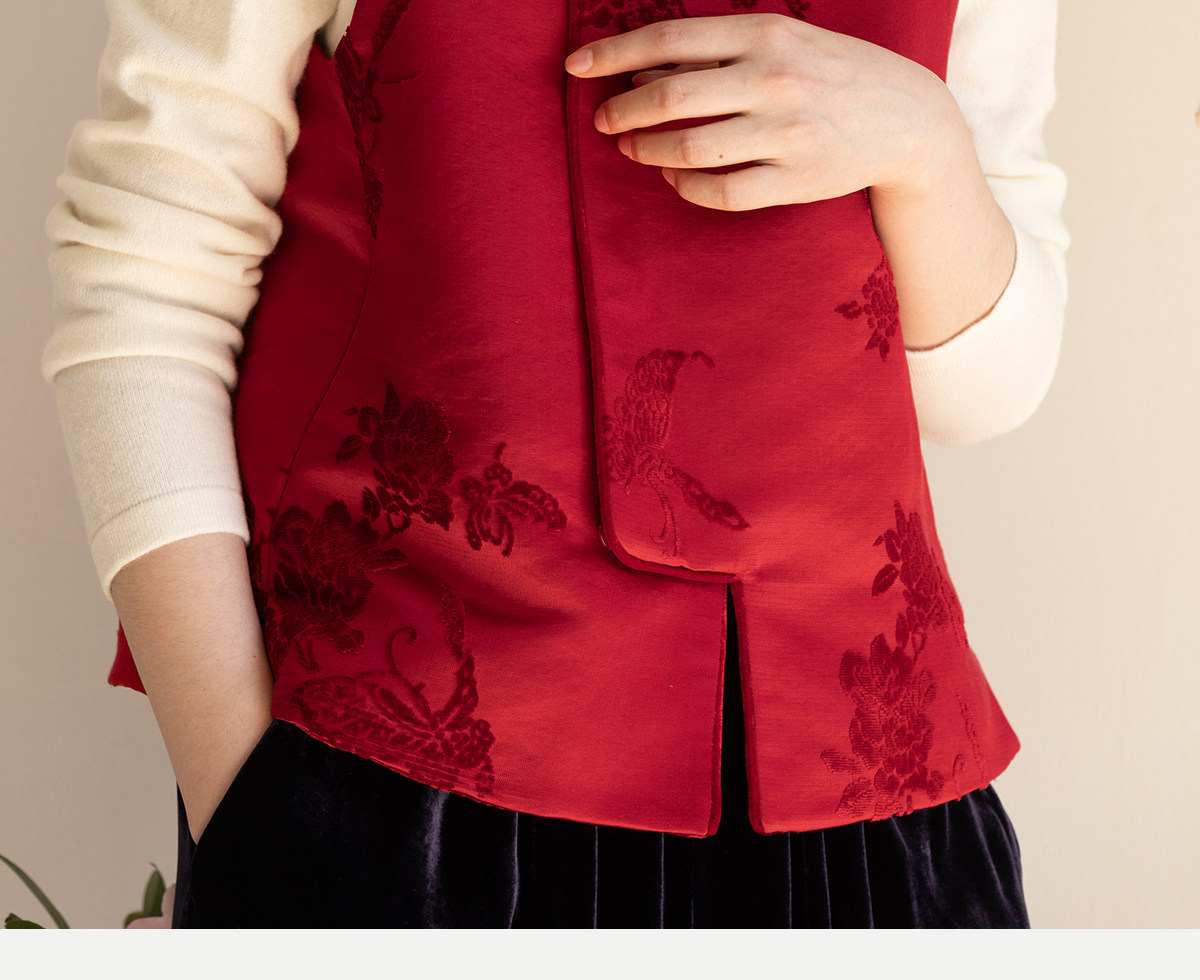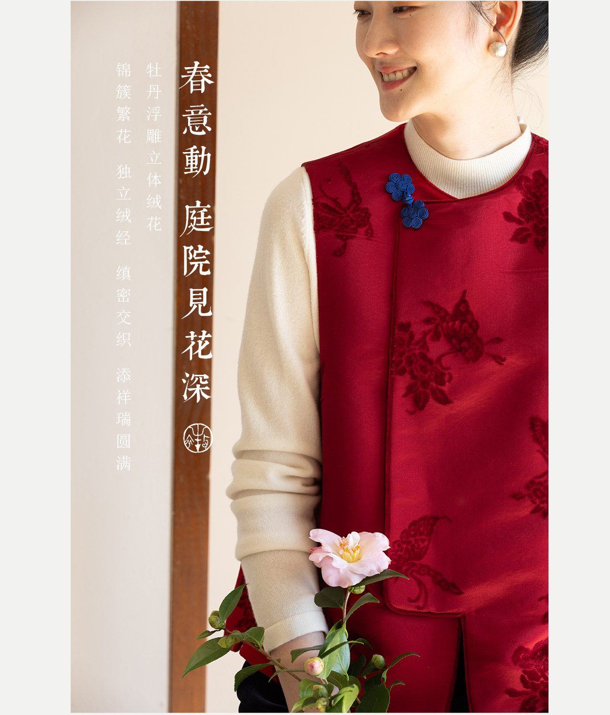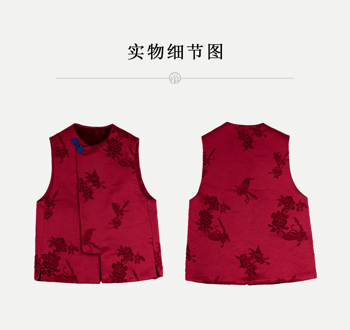 牧衣游原创 45姆米重磅非遗漳缎真丝浮雕马夹中式红色年服 喜柿