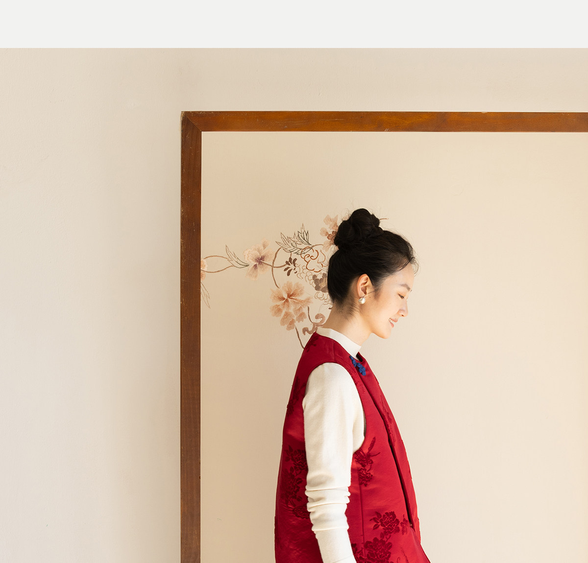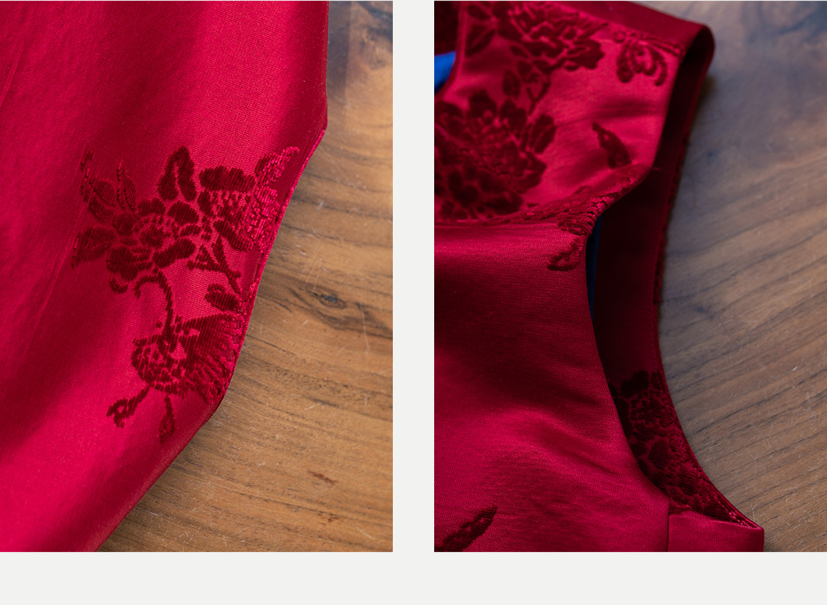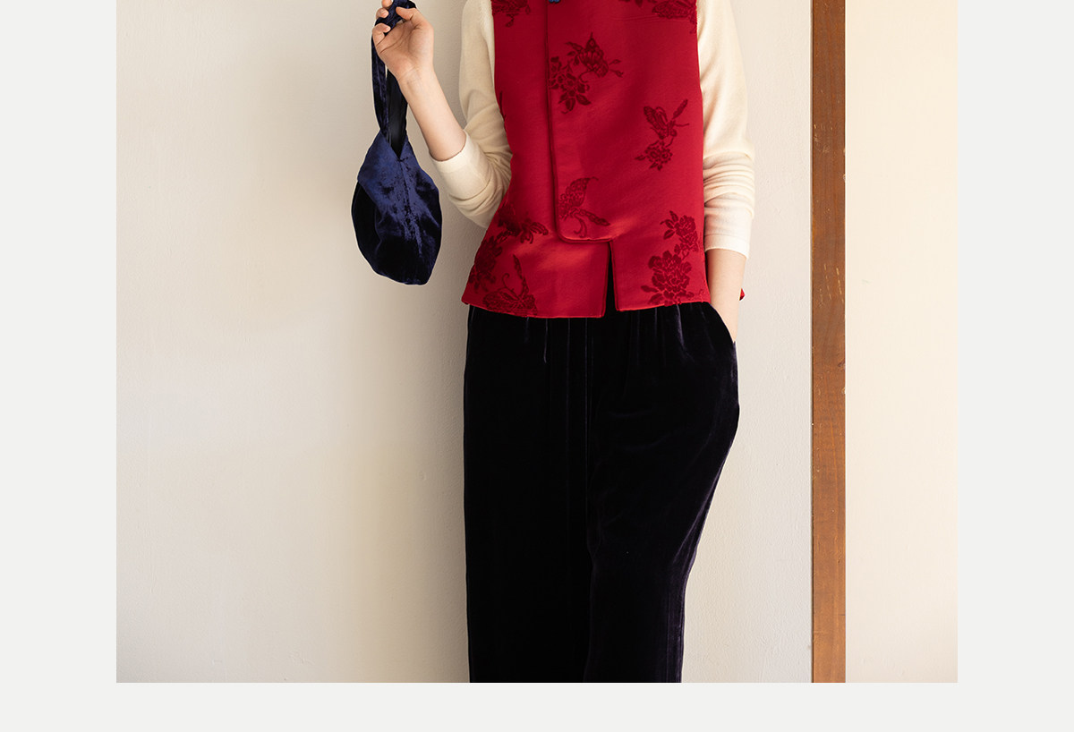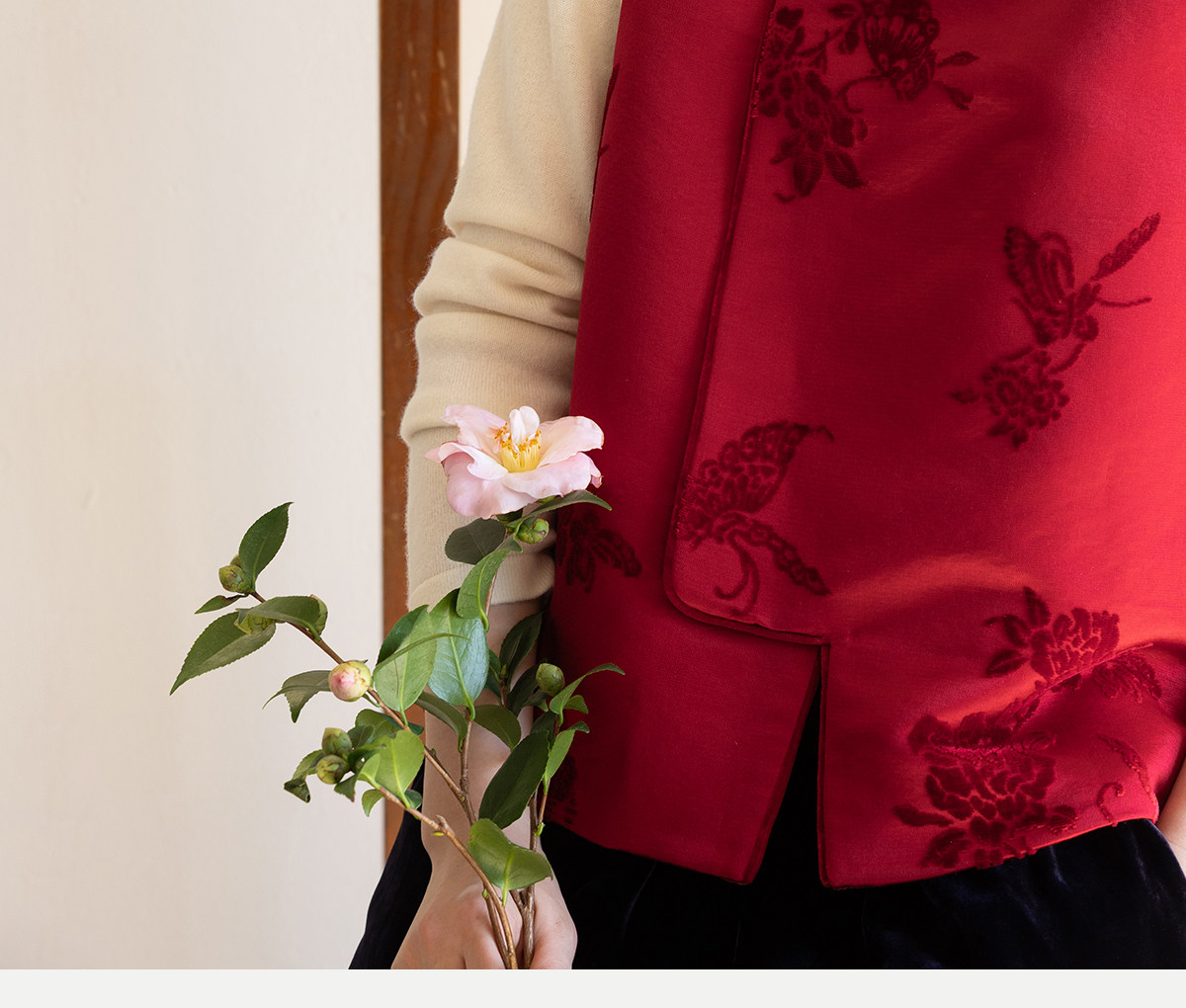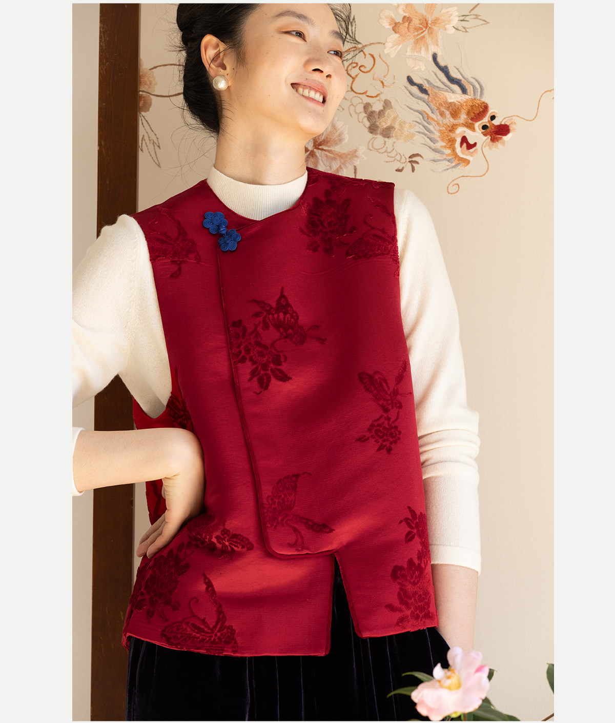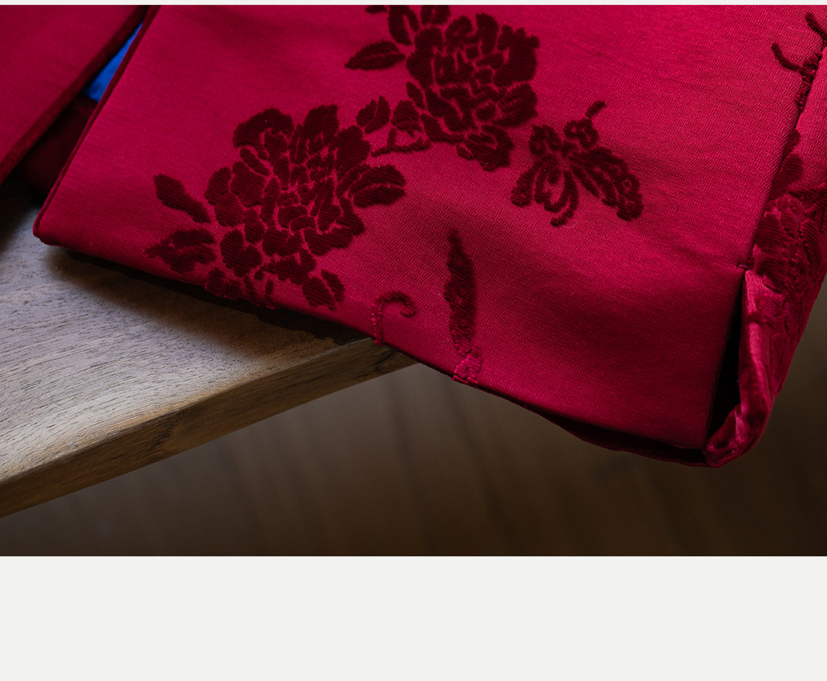 牧衣游原创 45姆米重磅非遗漳缎真丝浮雕马夹中式红色年服 喜柿