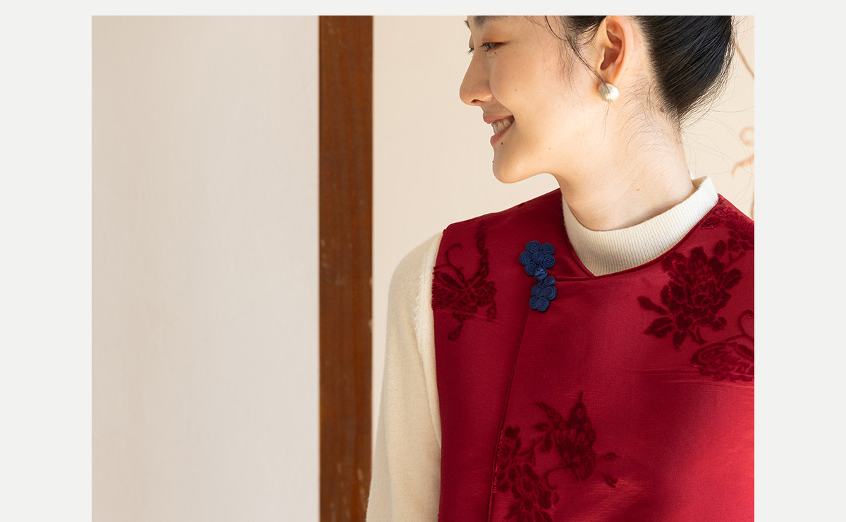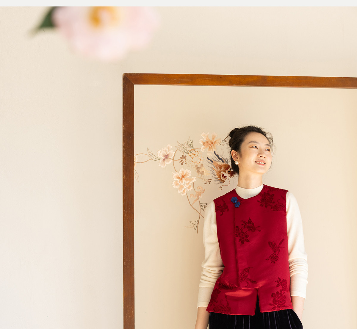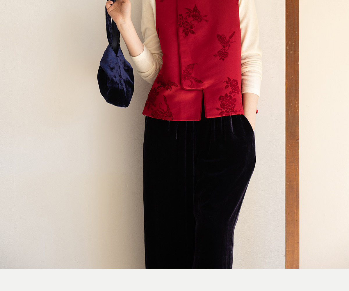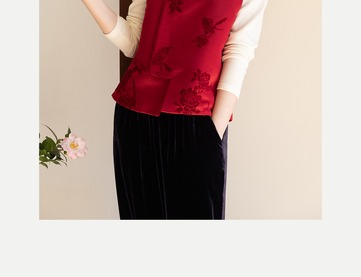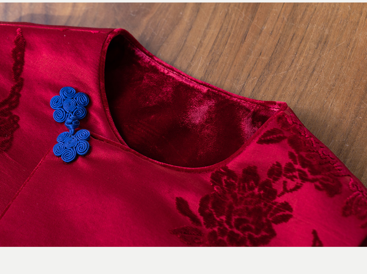 牧衣游原创 45姆米重磅非遗漳缎真丝浮雕马夹中式红色年服 喜柿