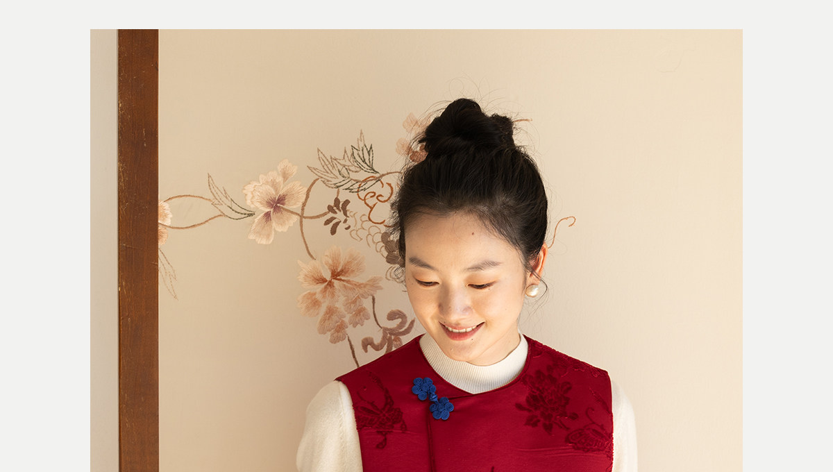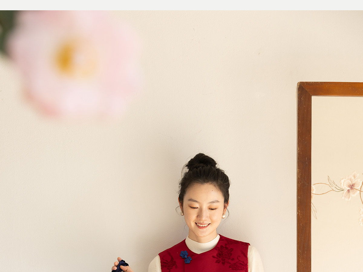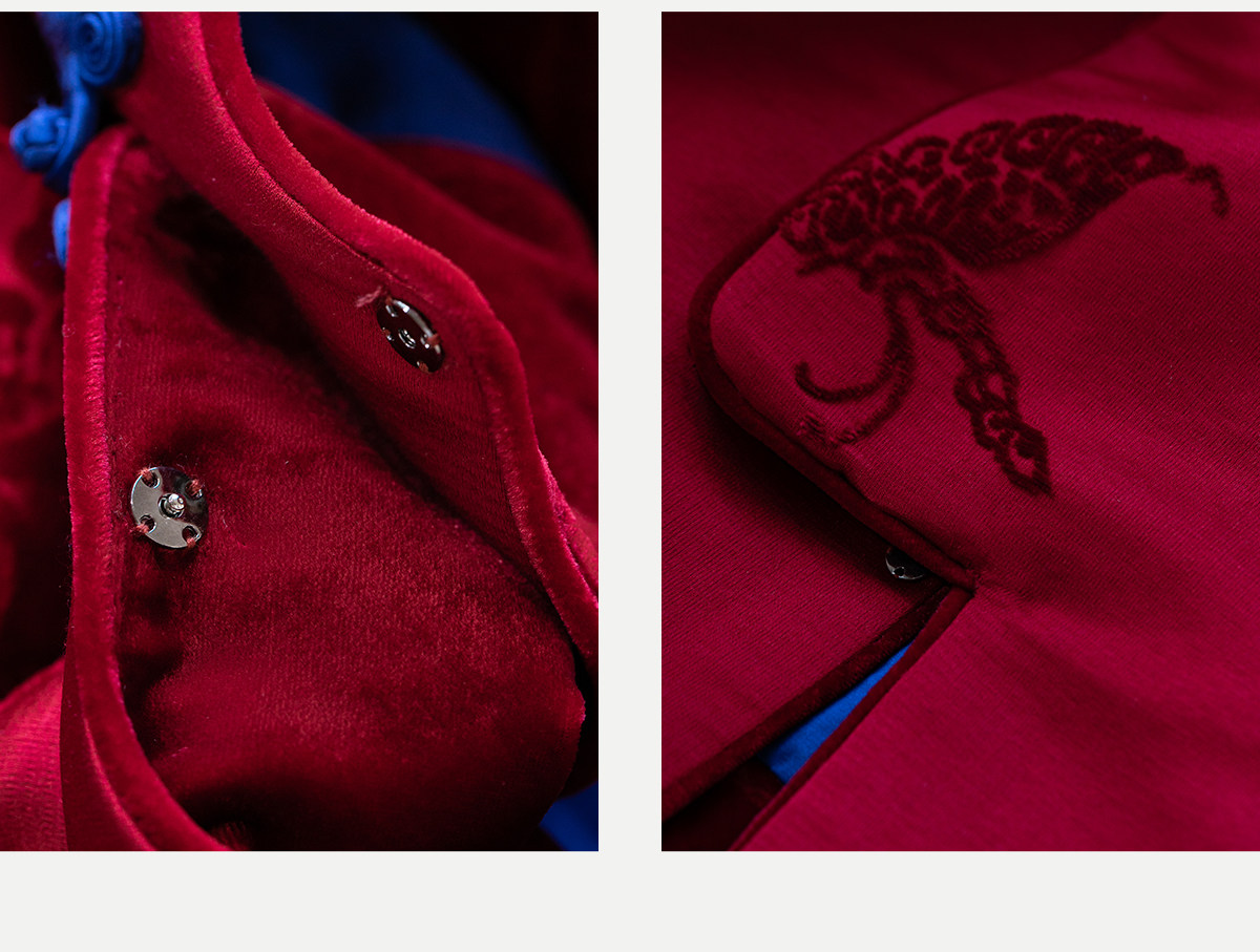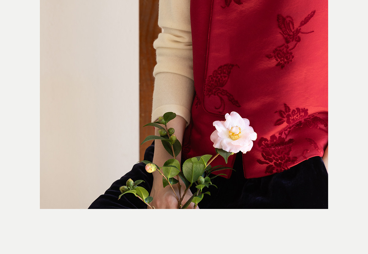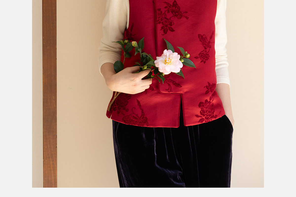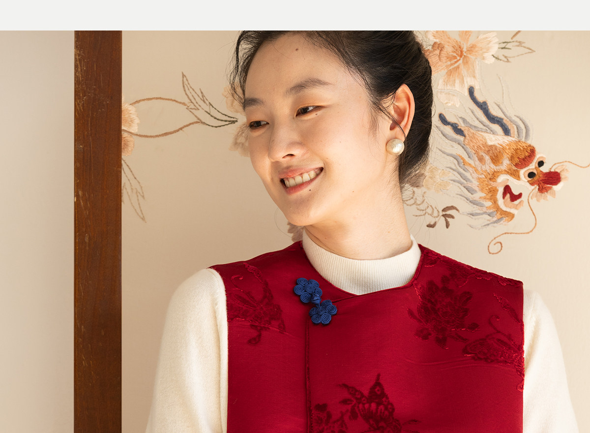牧衣游原创 45姆米重磅非遗漳缎真丝浮雕马夹中式红色年服 喜柿