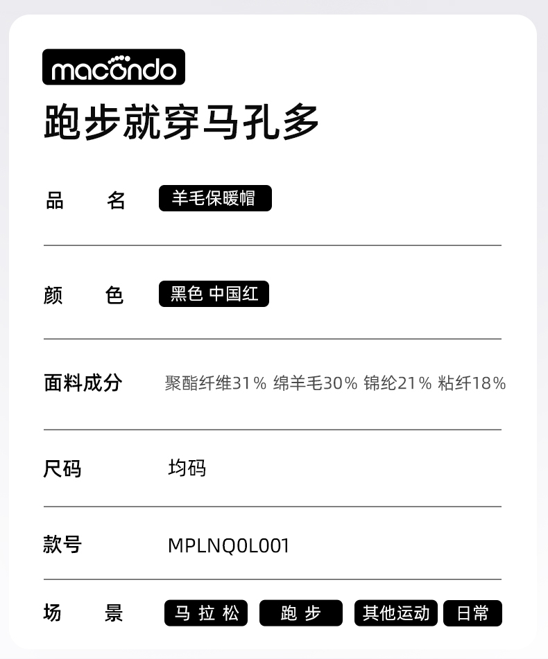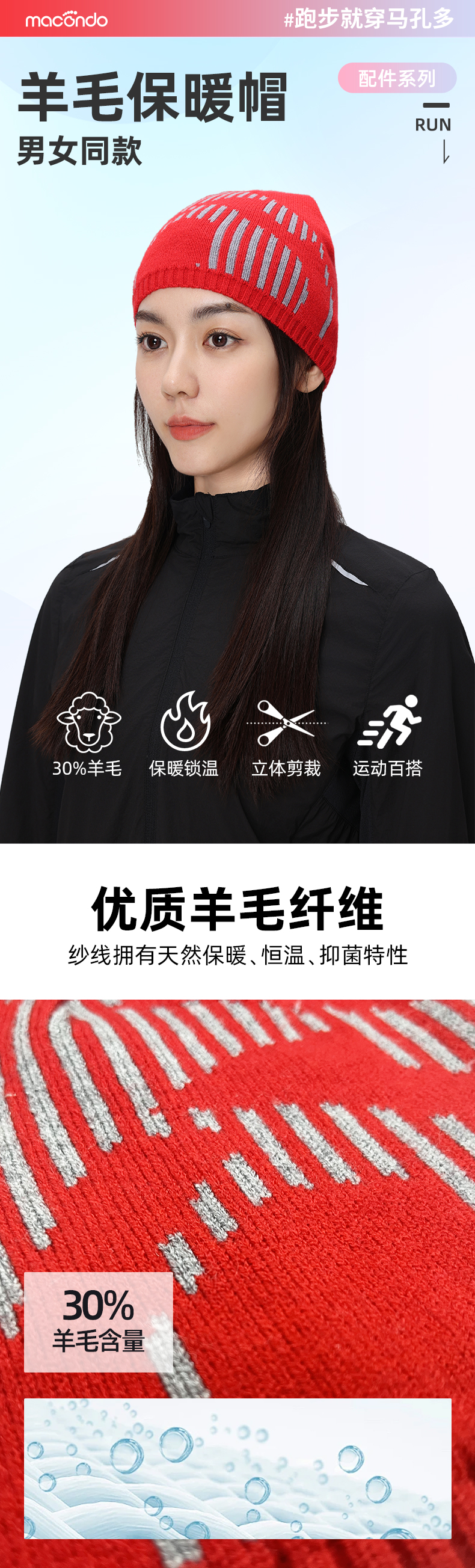 春秋马孔多 男女羊毛保暖帽 双层面料 柔软亲肤 保暖锁温 30%优质羊毛