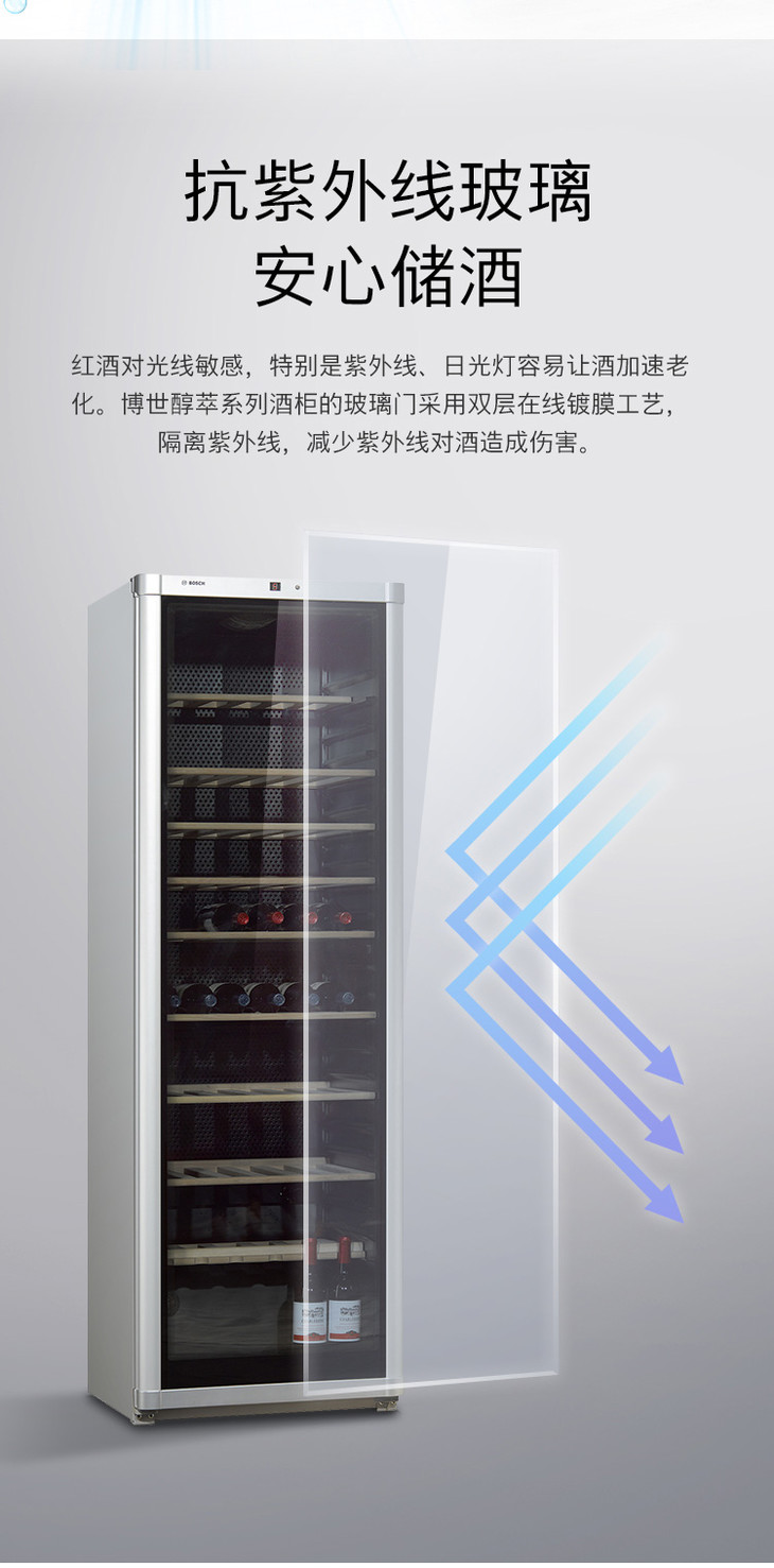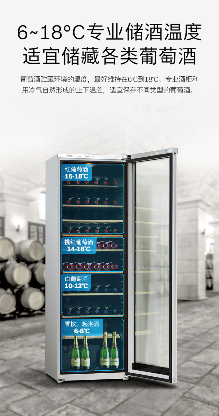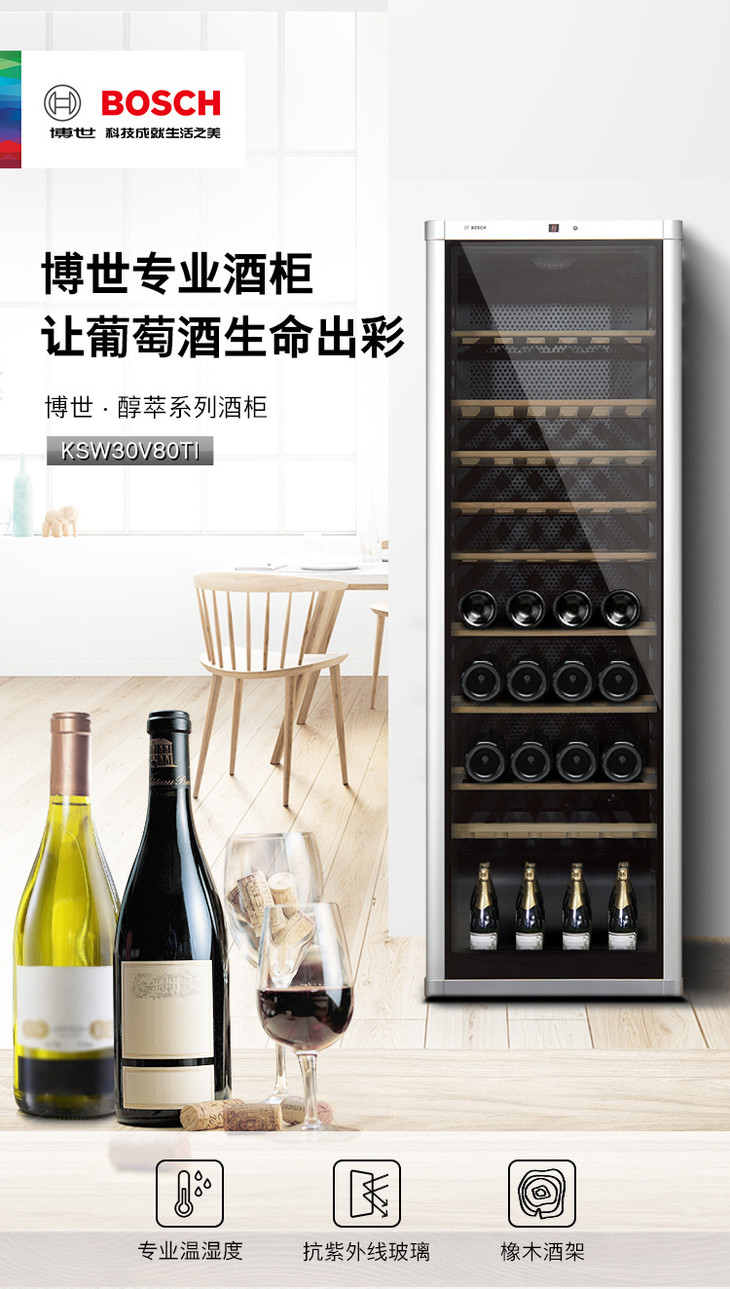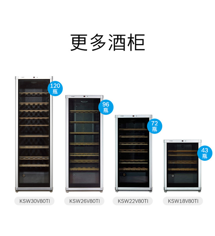 博世(BOSCH) 385L酒柜 家用红酒柜 橡木酒架 120支装葡萄酒柜 抗紫外线玻璃 智能控湿KSW30V80TI
