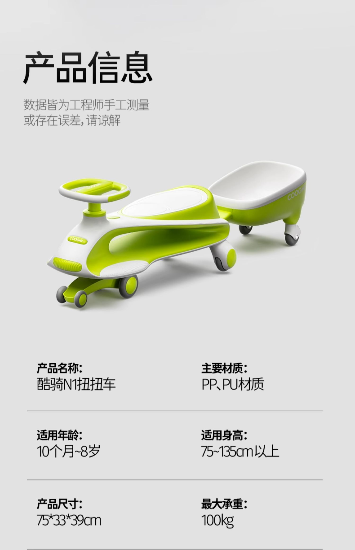 【COOGHI/酷骑】N1扭扭车 1-3-6岁