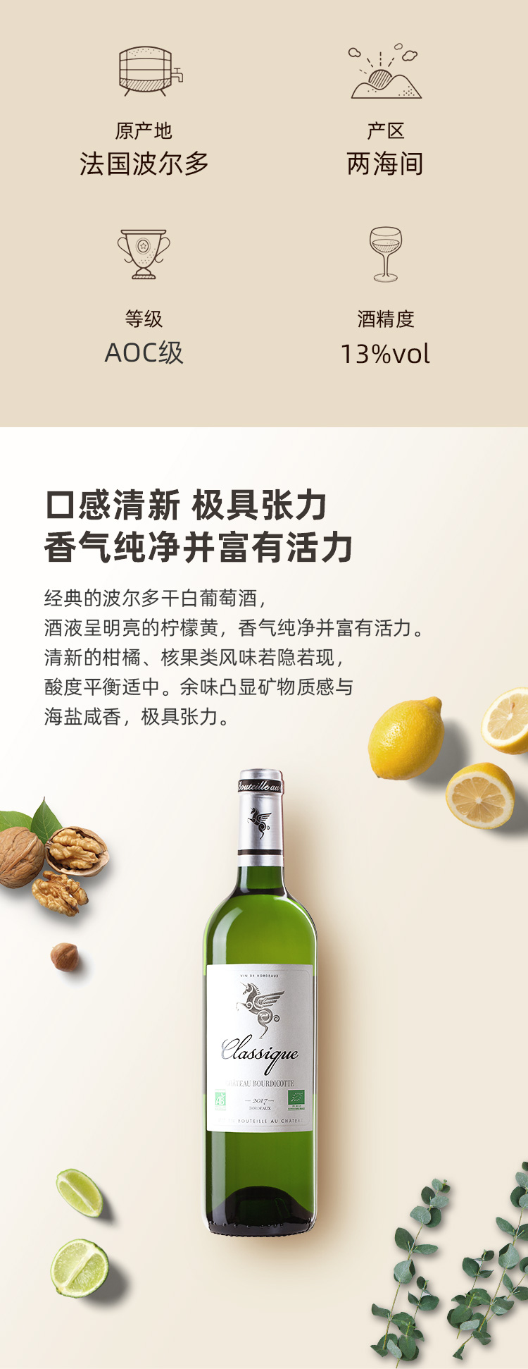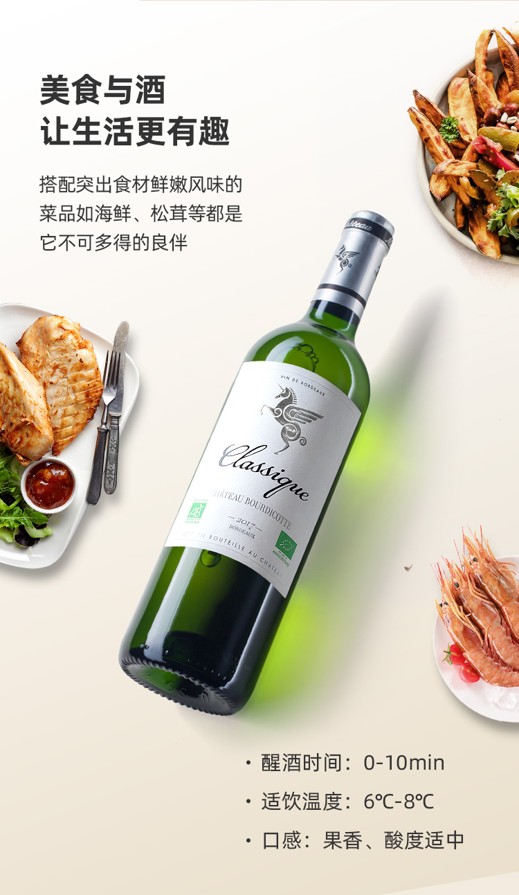 翡马 波尔多白葡萄酒 经典有机白葡萄酒单支礼盒 13%vol 750ml