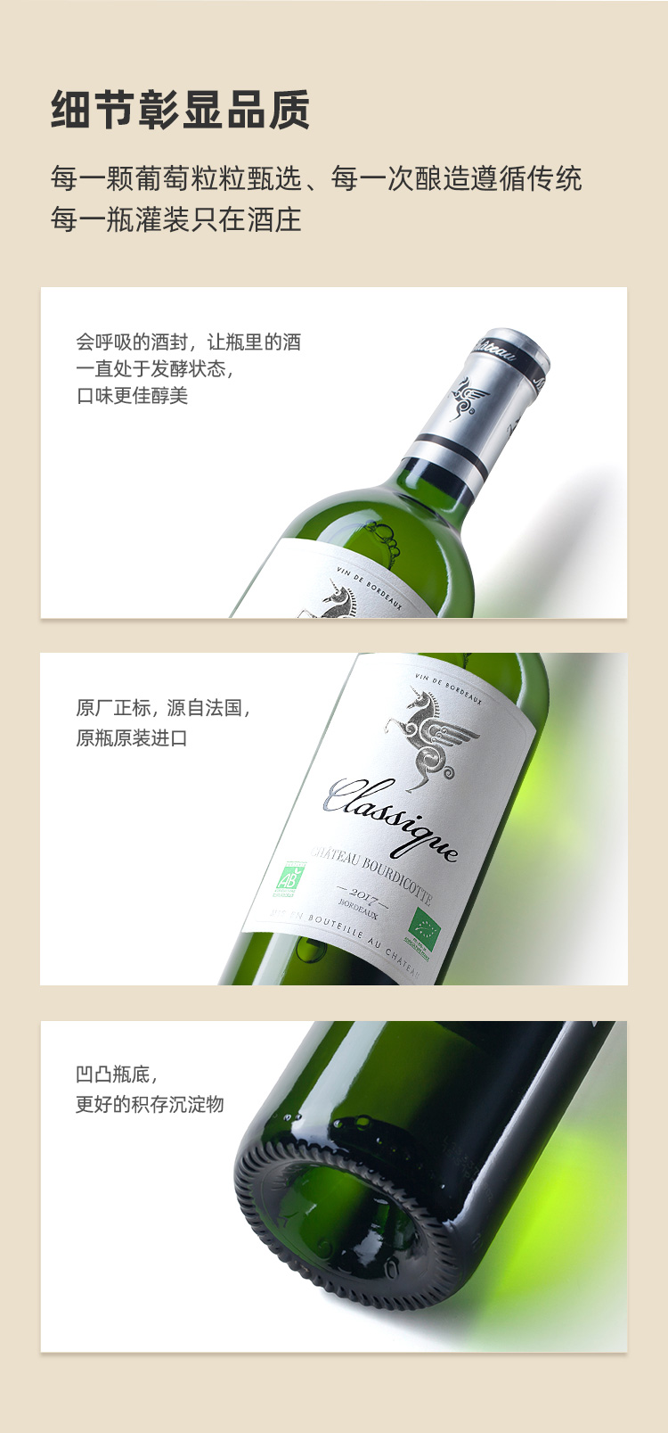 翡马 波尔多有机葡萄酒 金酿干红 13.5度 750ml 整箱装 6支