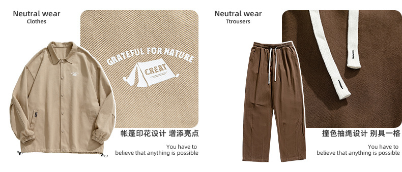 「三款配色!上衣+裤子」韩路日系男装 日系休闲套装男春季复古翻领夹克宽松直筒裤两件套上衣下装