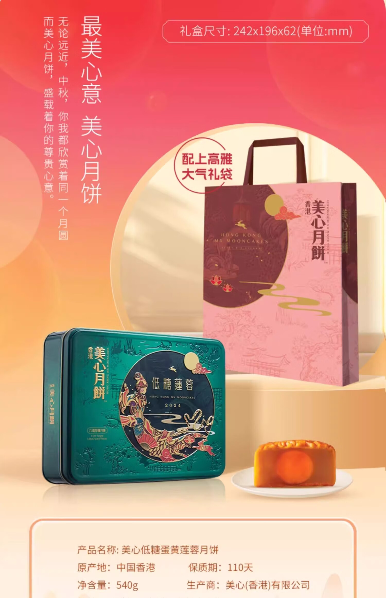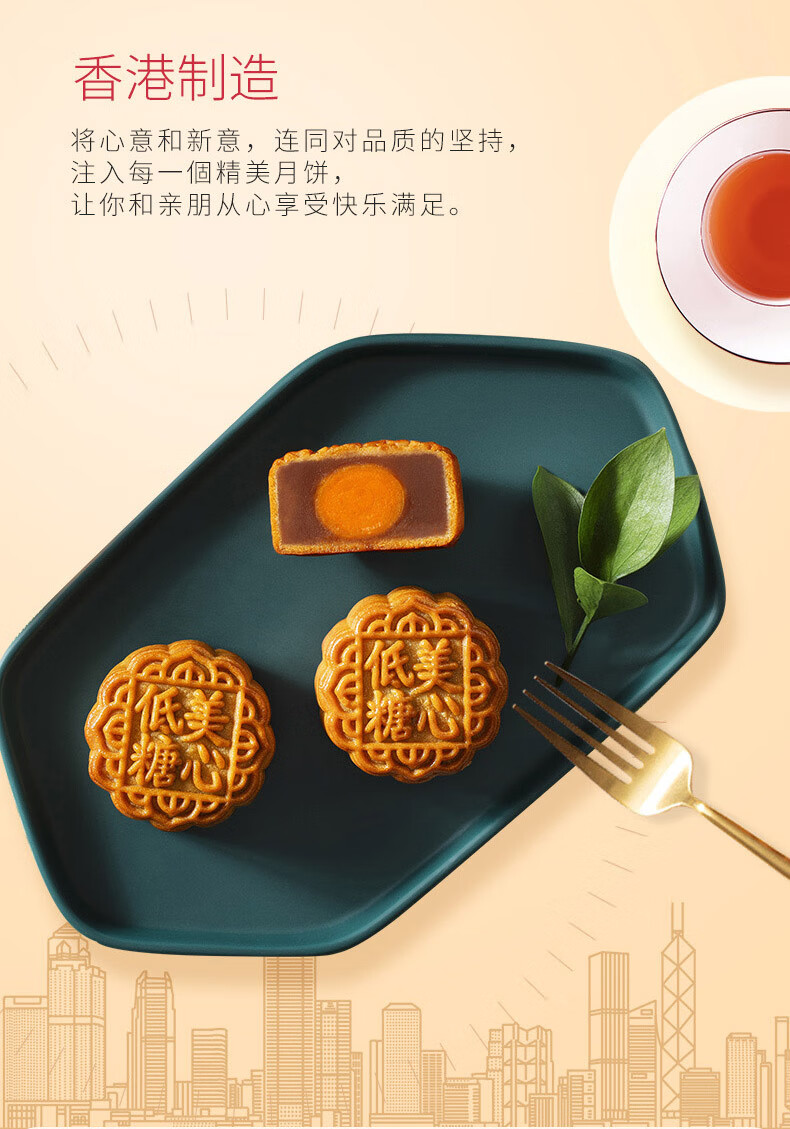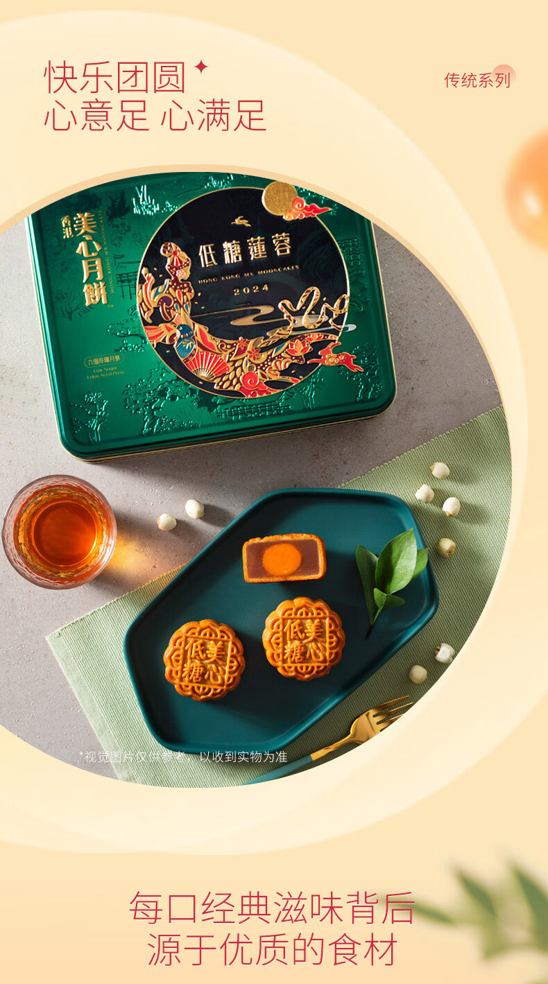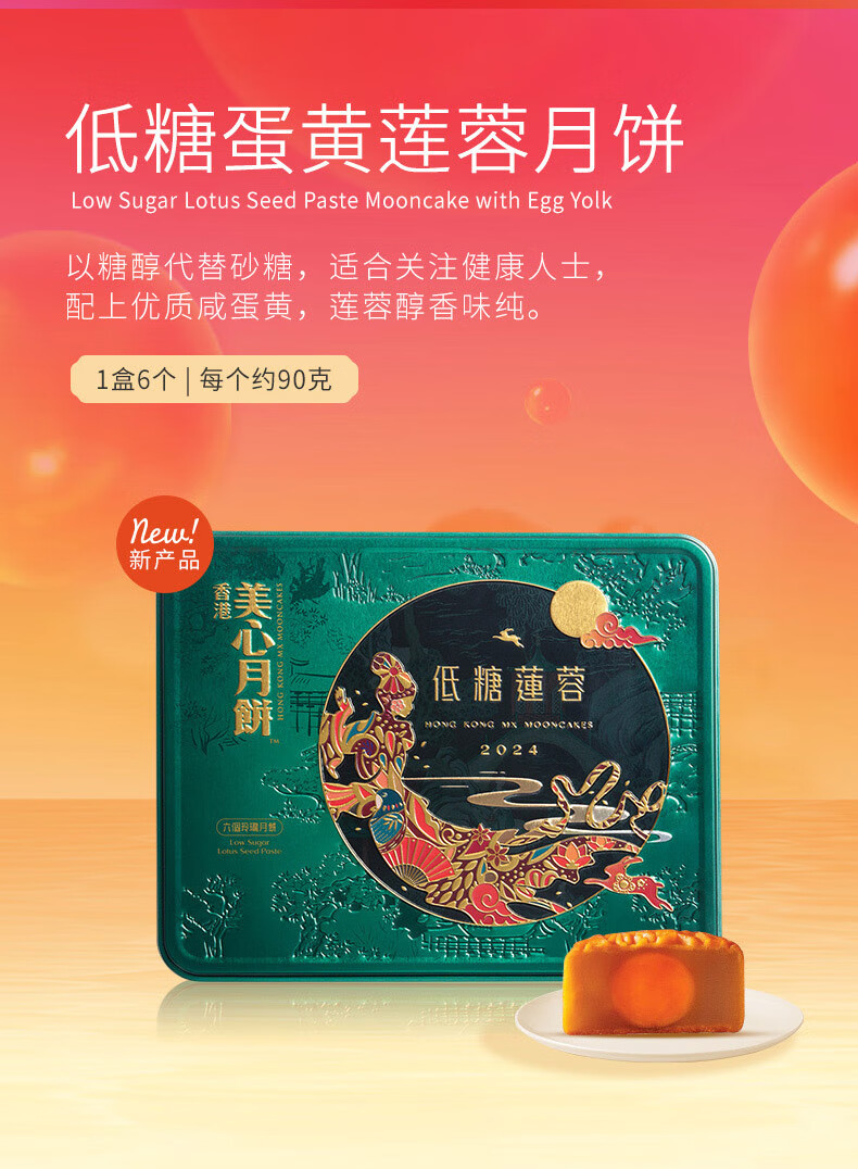 美心(Meixin)月饼礼盒港式低糖莲蓉蛋黄月饼礼盒540g中秋送礼香港进口