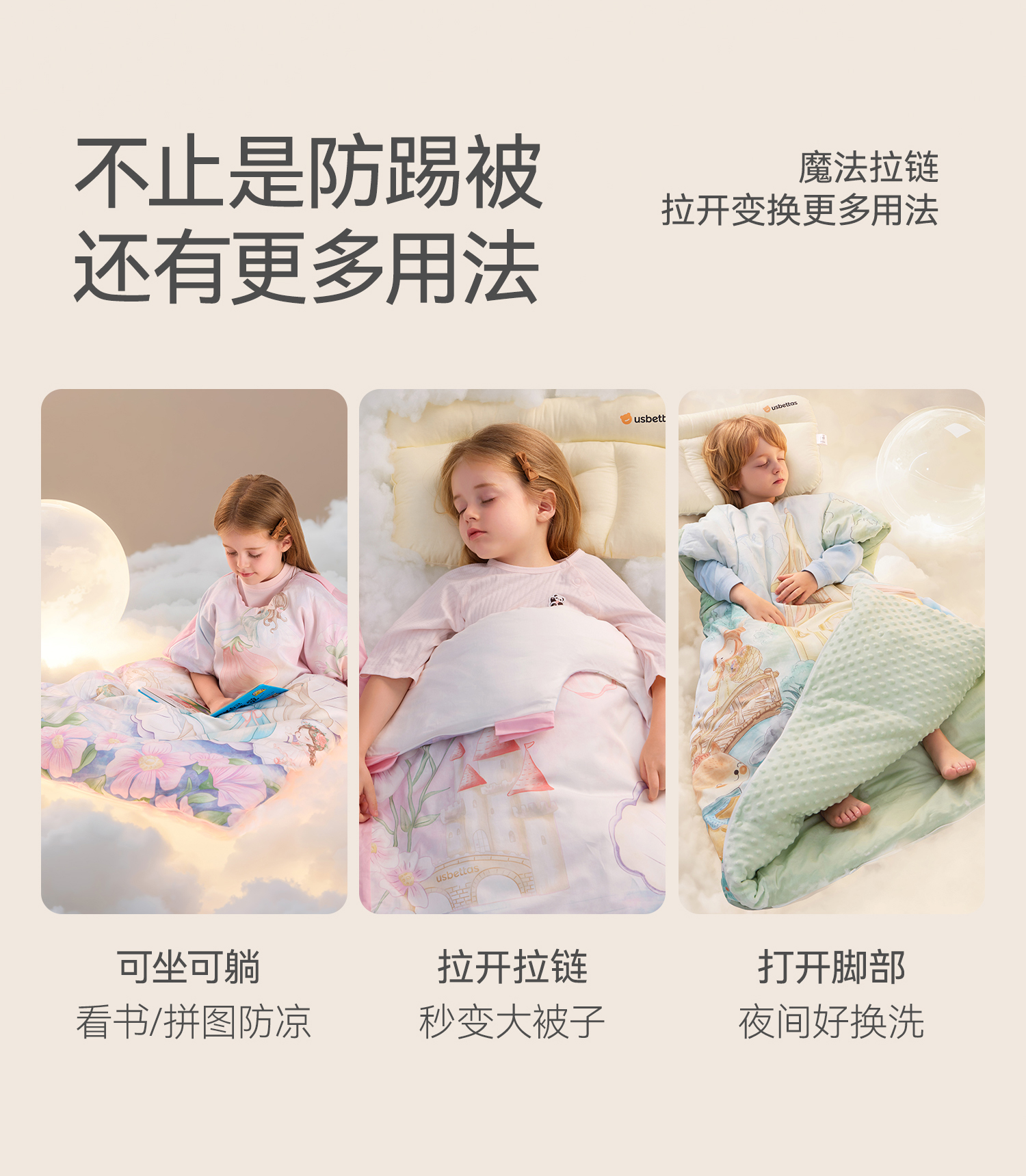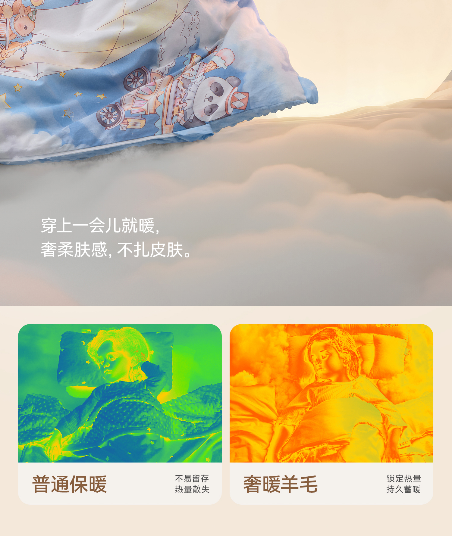 贝肽斯[胎脂皮]儿童防踢睡被秋冬季加厚羊毛睡袋婴儿宝宝防踢被子