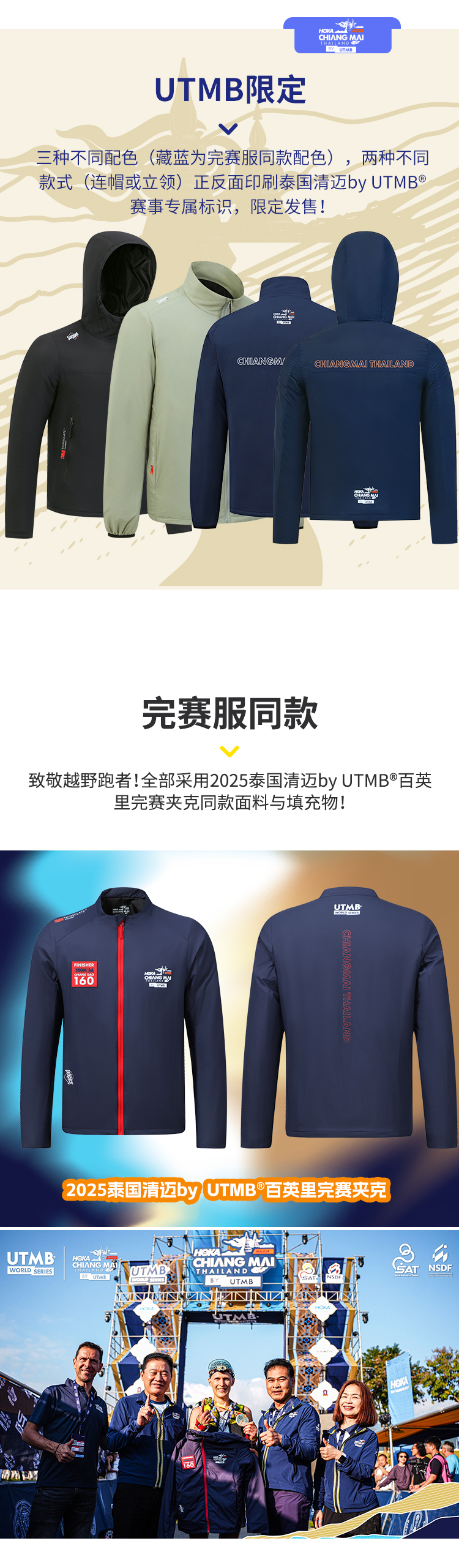 泰国清迈by UTMB®限定版保暖棉服男女户外跑步运动轻量保暖防寒外套(有赠品)