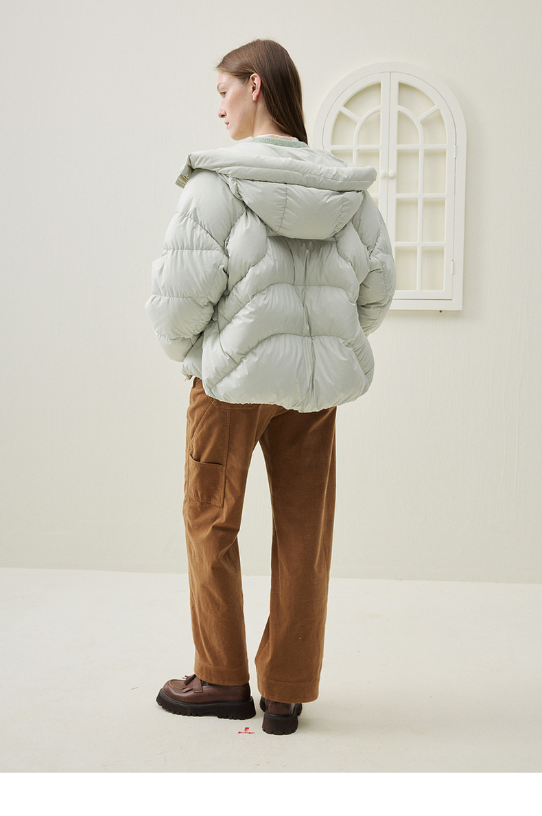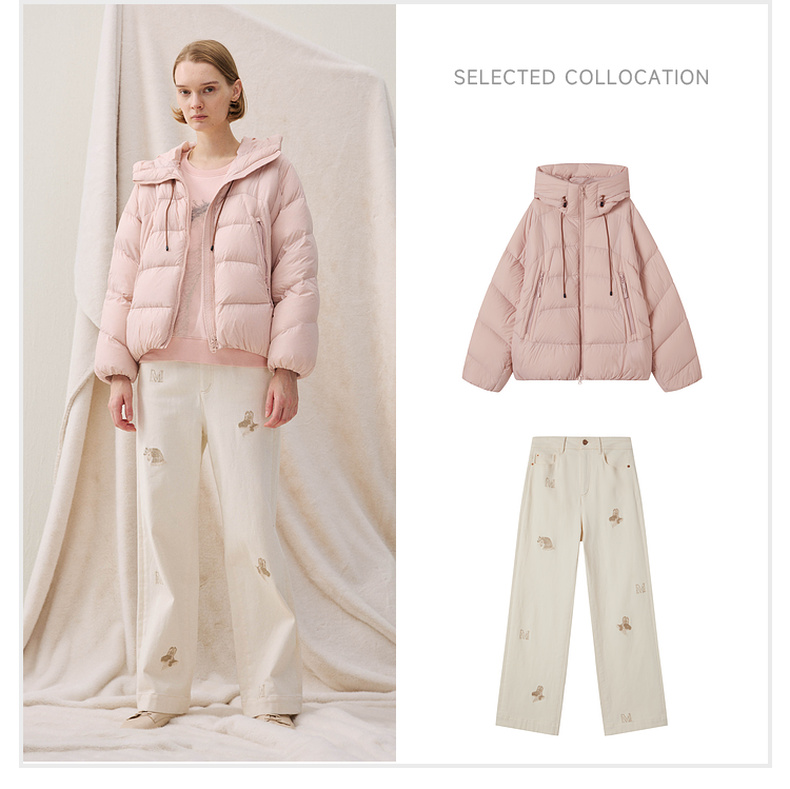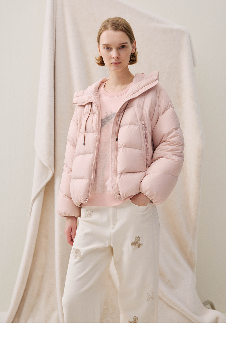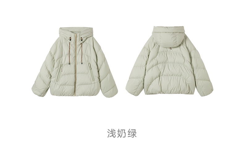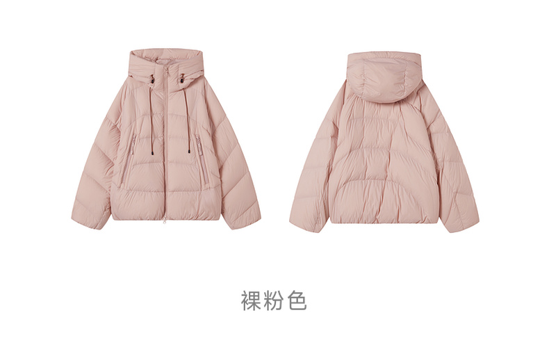 谜底连帽羽绒服2025年冬季新品柔软鹅绒保暖短款宽松女254MY1619