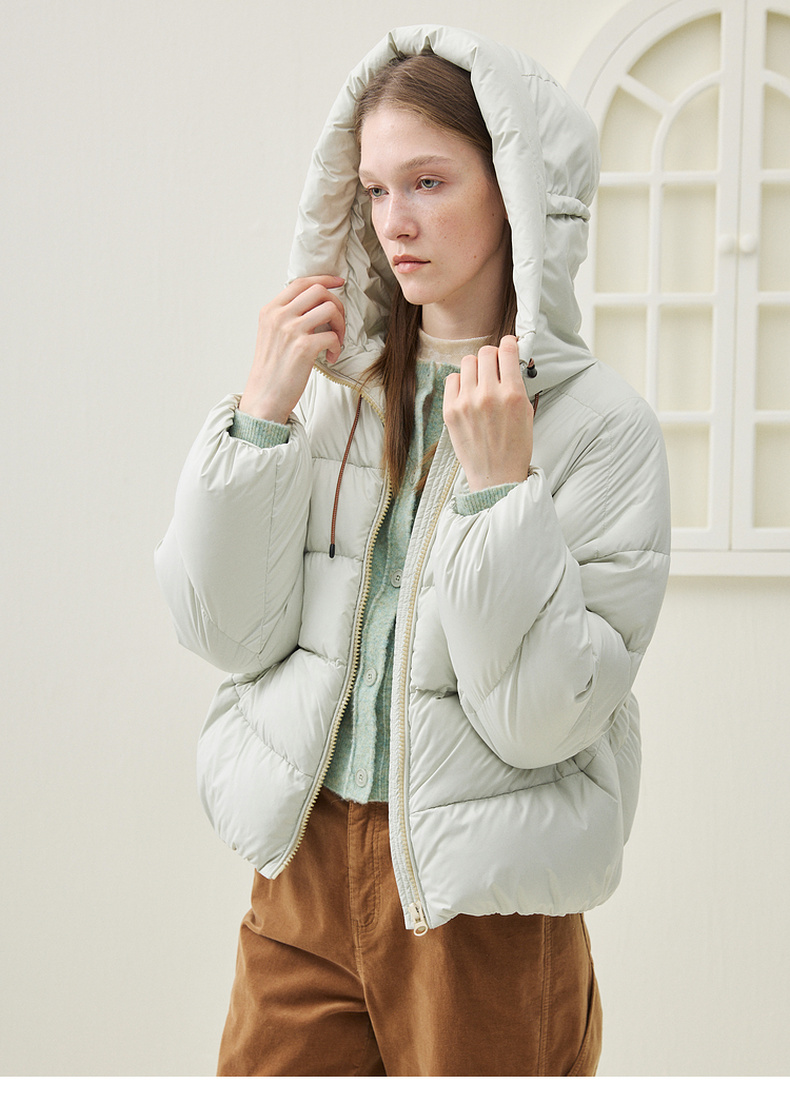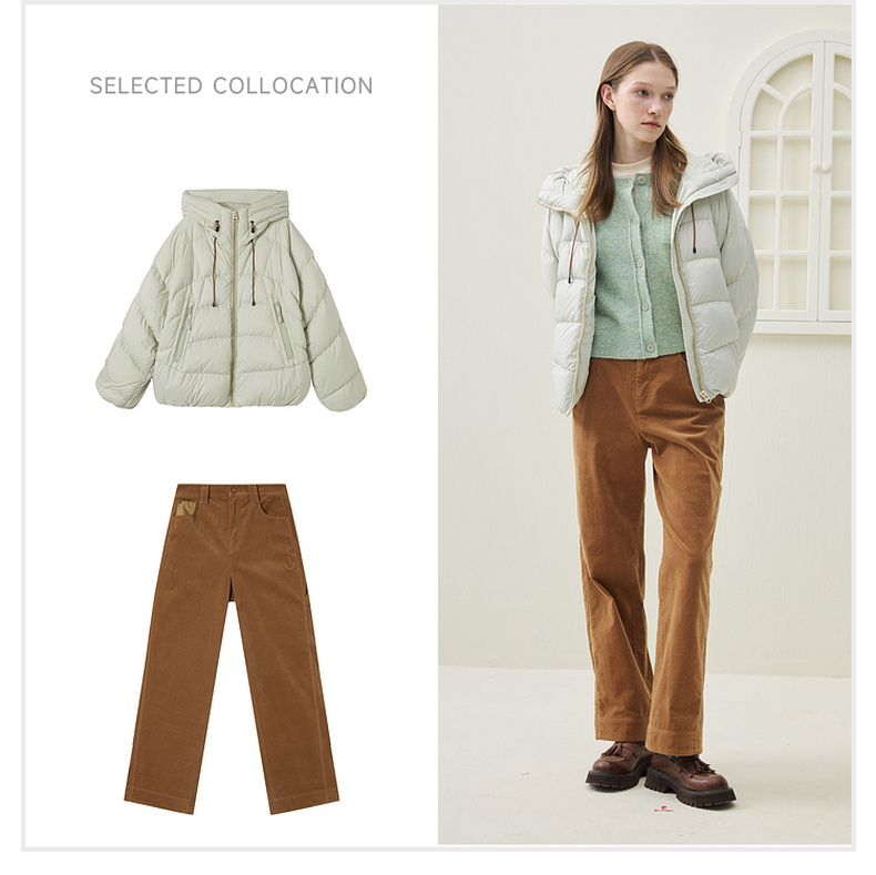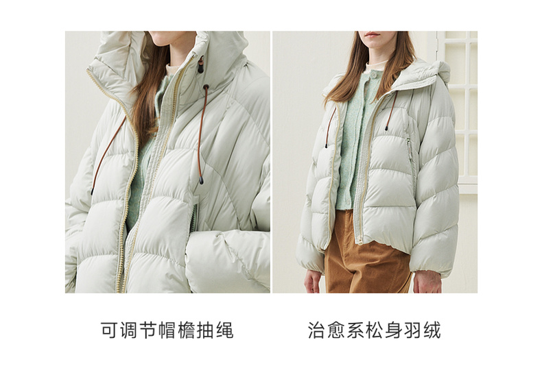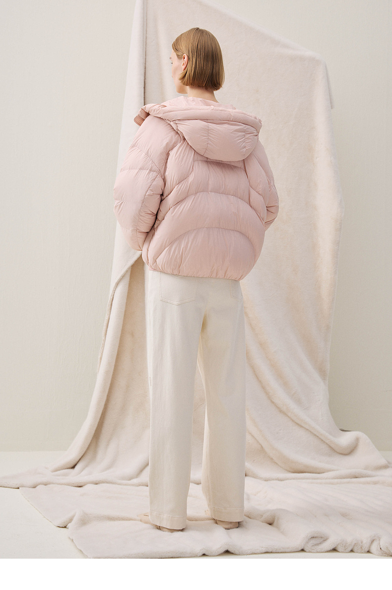 谜底连帽羽绒服2025年冬季新品柔软鹅绒保暖短款宽松女254MY1619
