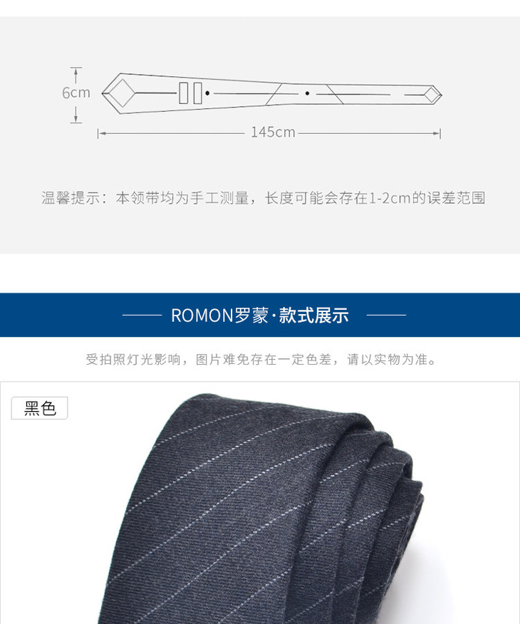 【礼盒装】罗蒙羊毛领带男士正装商务结婚韩版休闲窄款手打条纹领带