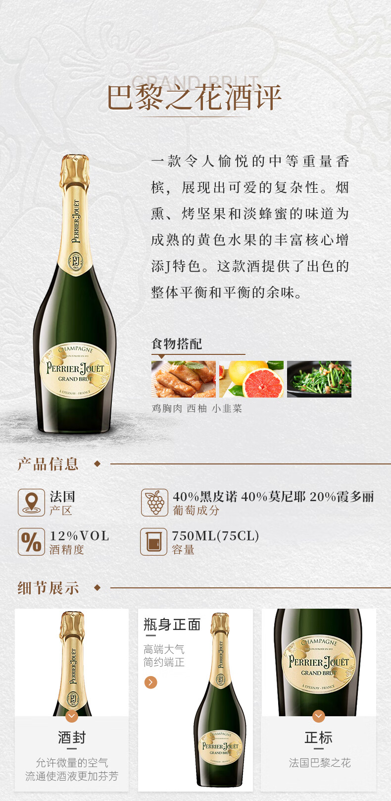 巴黎之花法国特级干型香槟 750ml法国进口