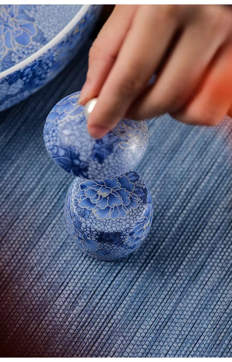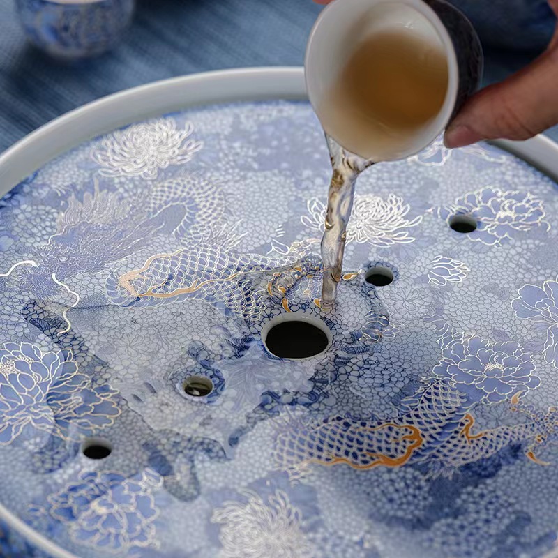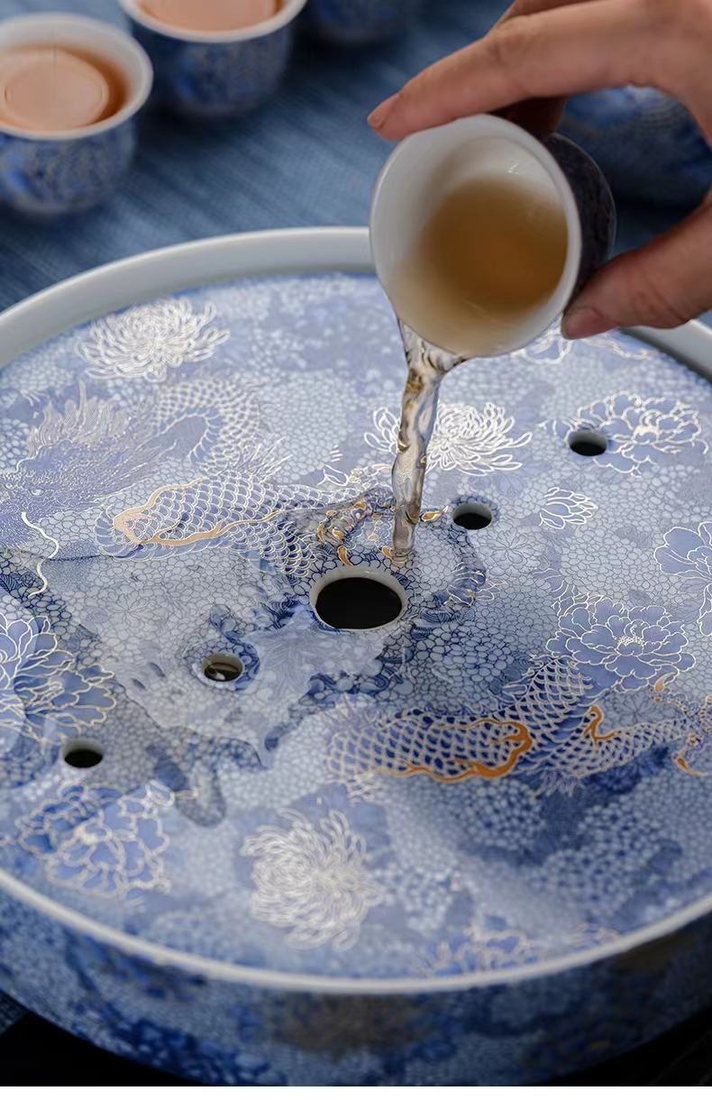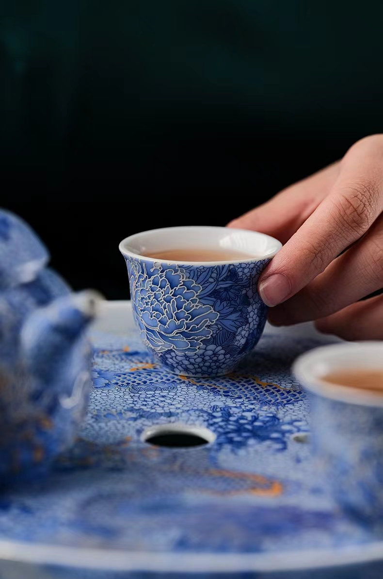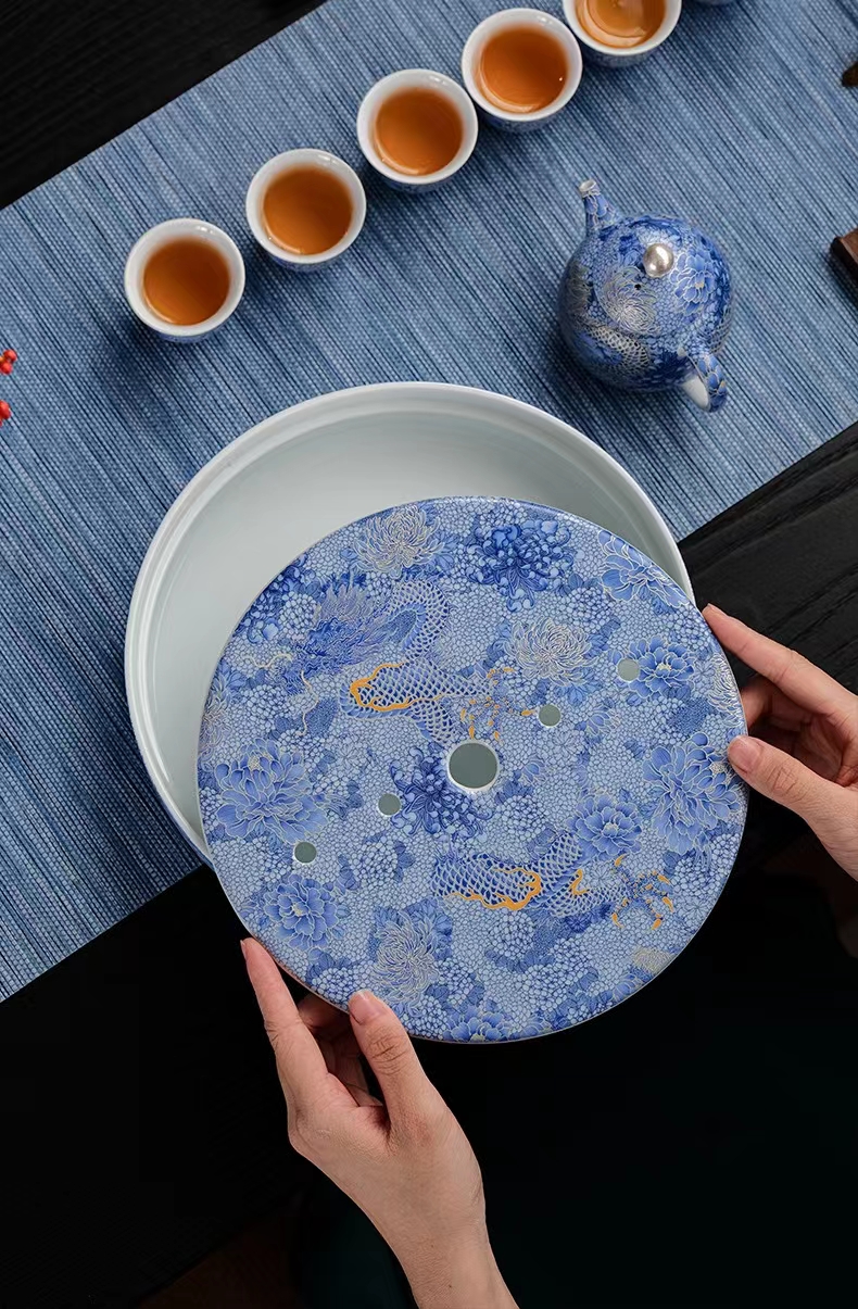 腾龙盛世999纯银掐丝珐琅青花12头茶器套装