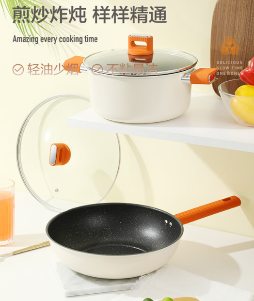 德世朗DFS-TZ936A锦“橙”精铁不粘锅两件套