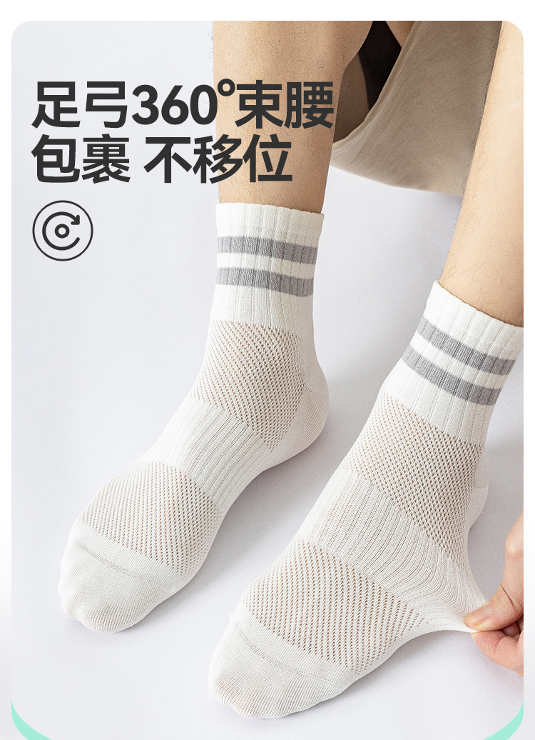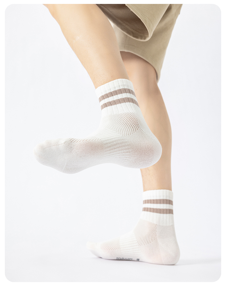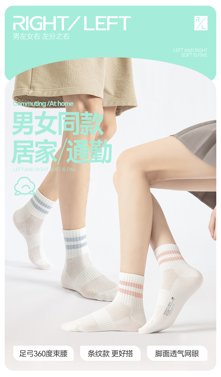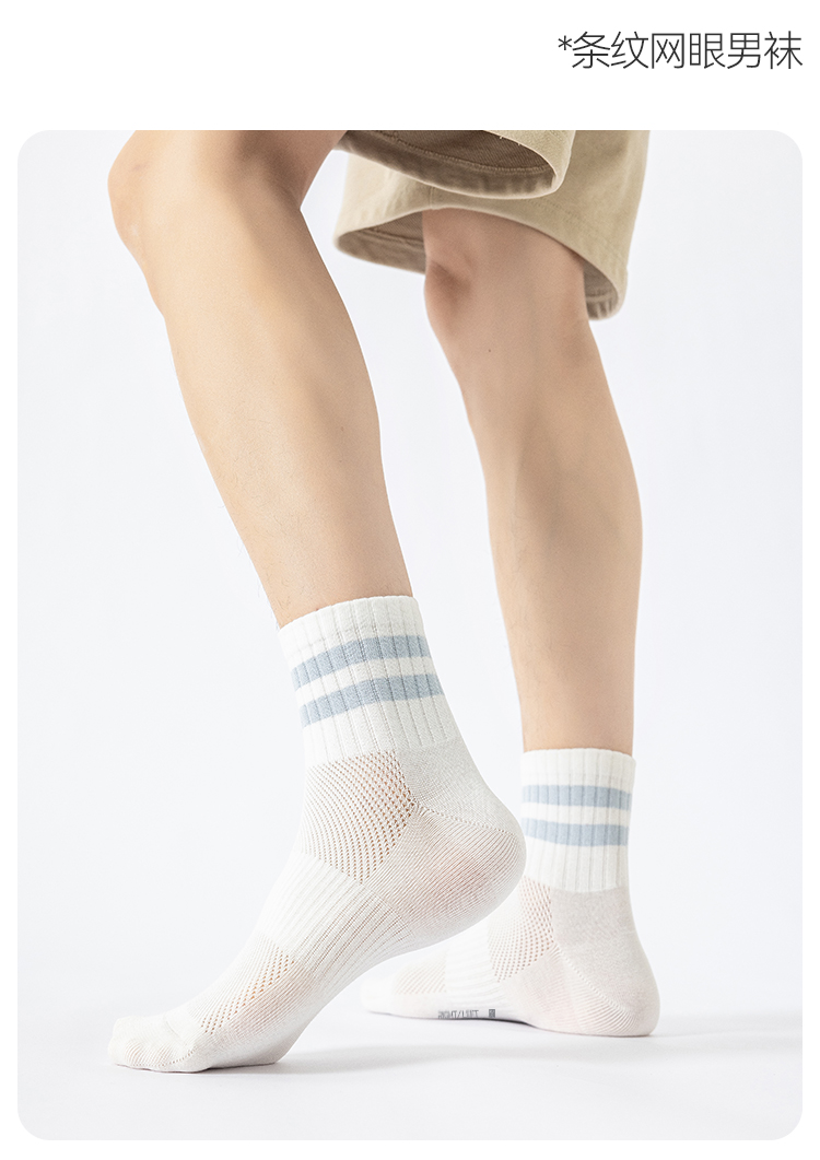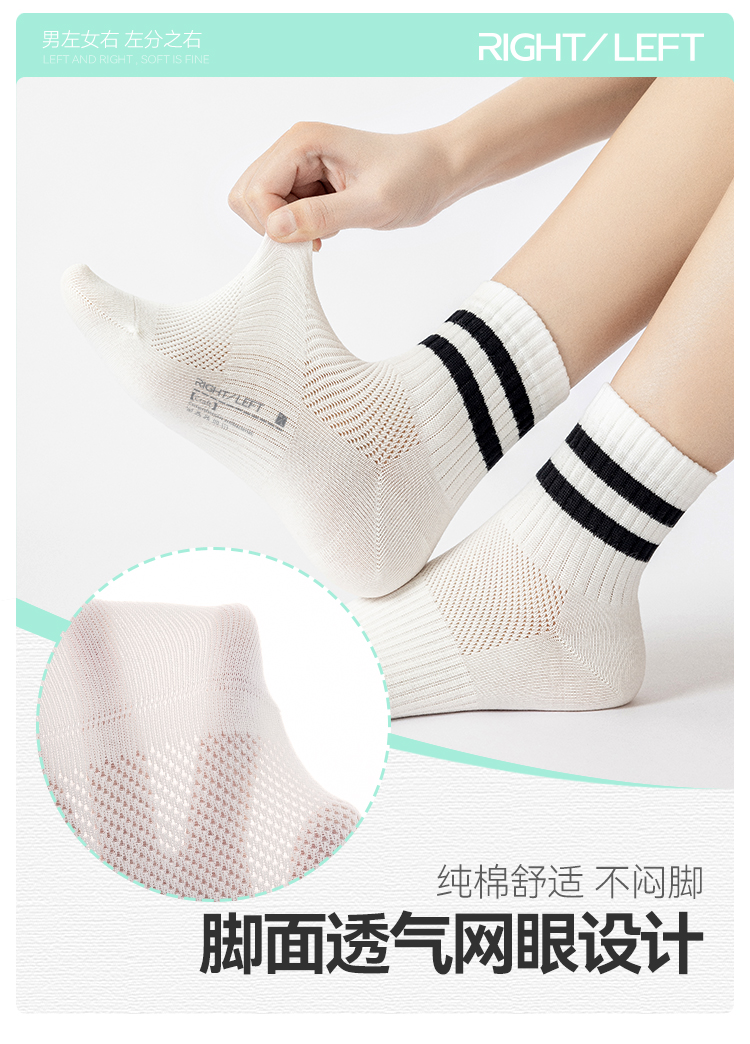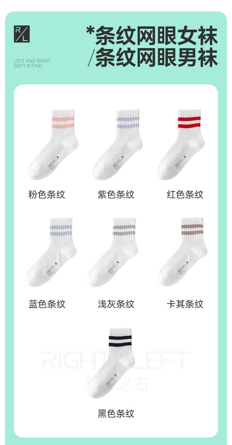 左分之右纯棉网眼条纹橡筋袜子男女春夏透气薄款10A抗菌运动短袜