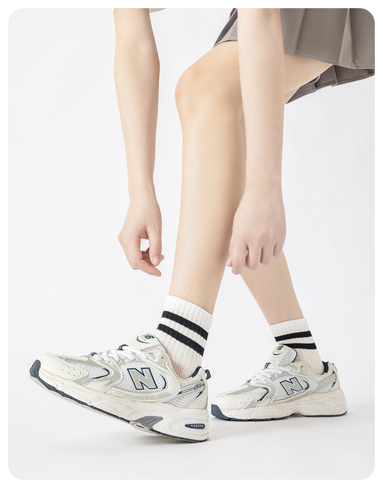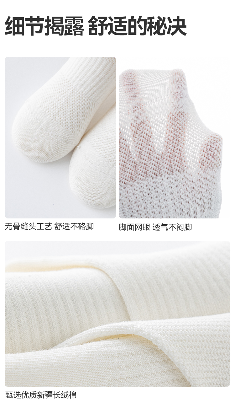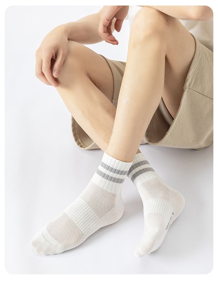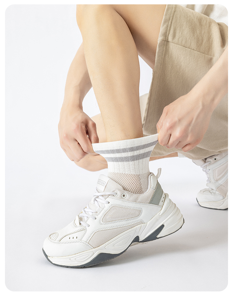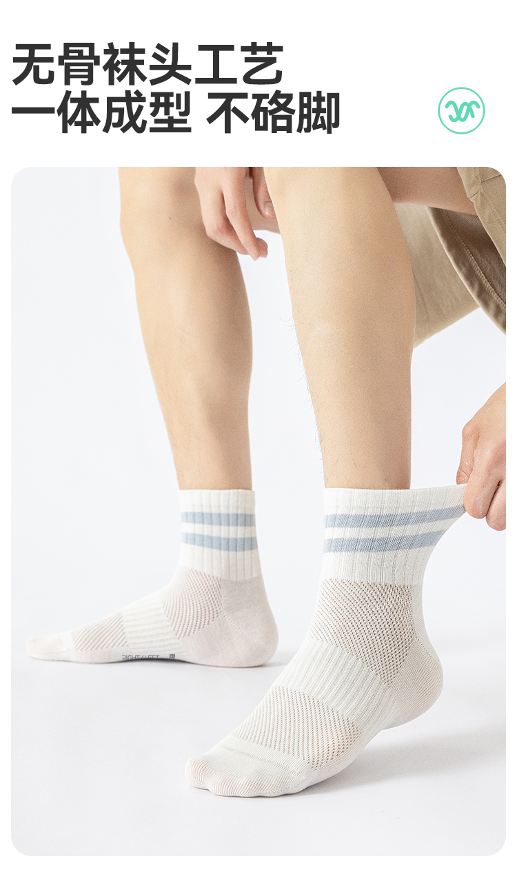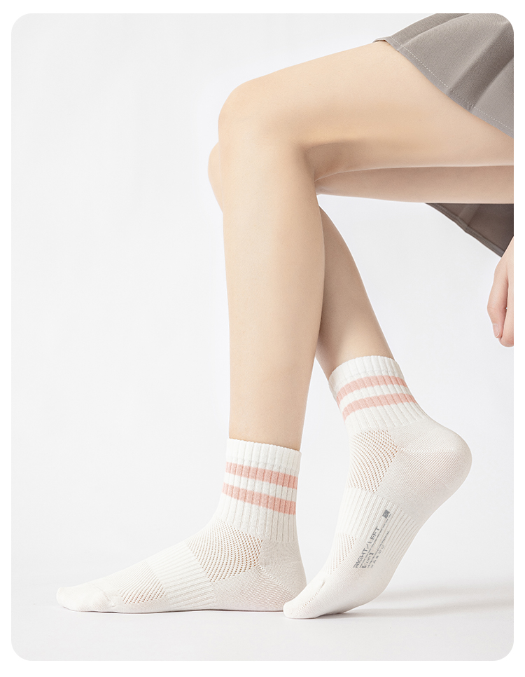 左分之右纯棉网眼条纹橡筋袜子男女春夏透气薄款10A抗菌运动短袜