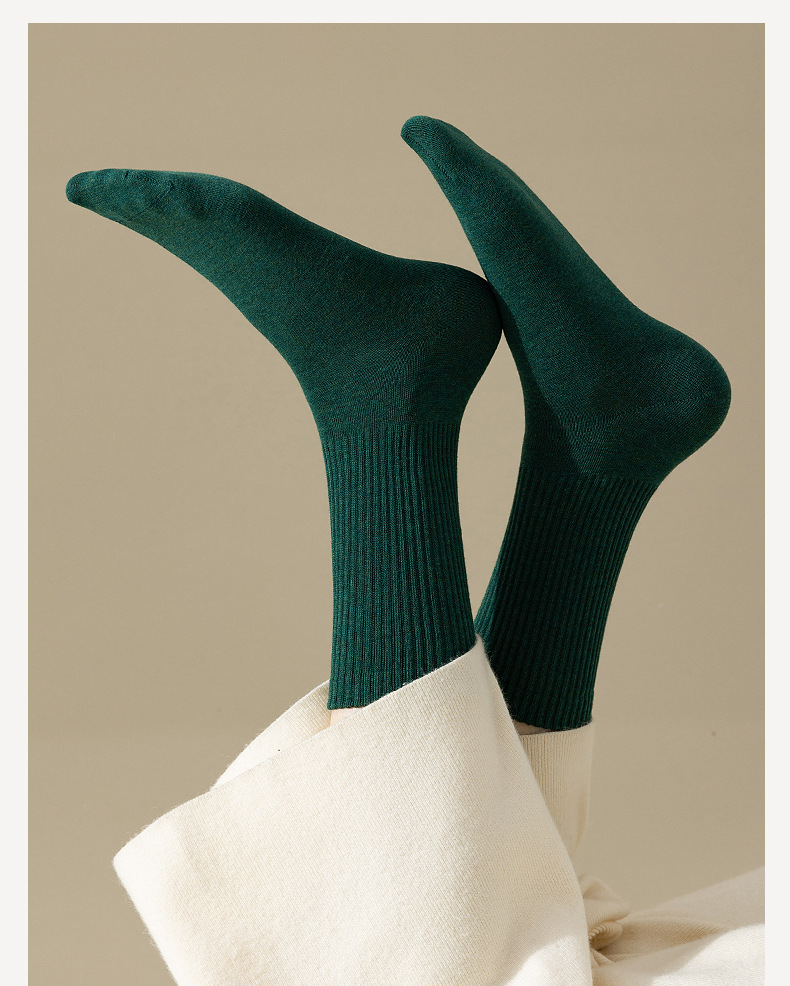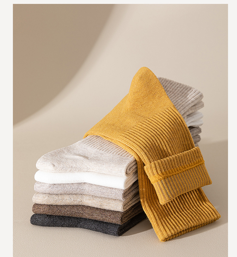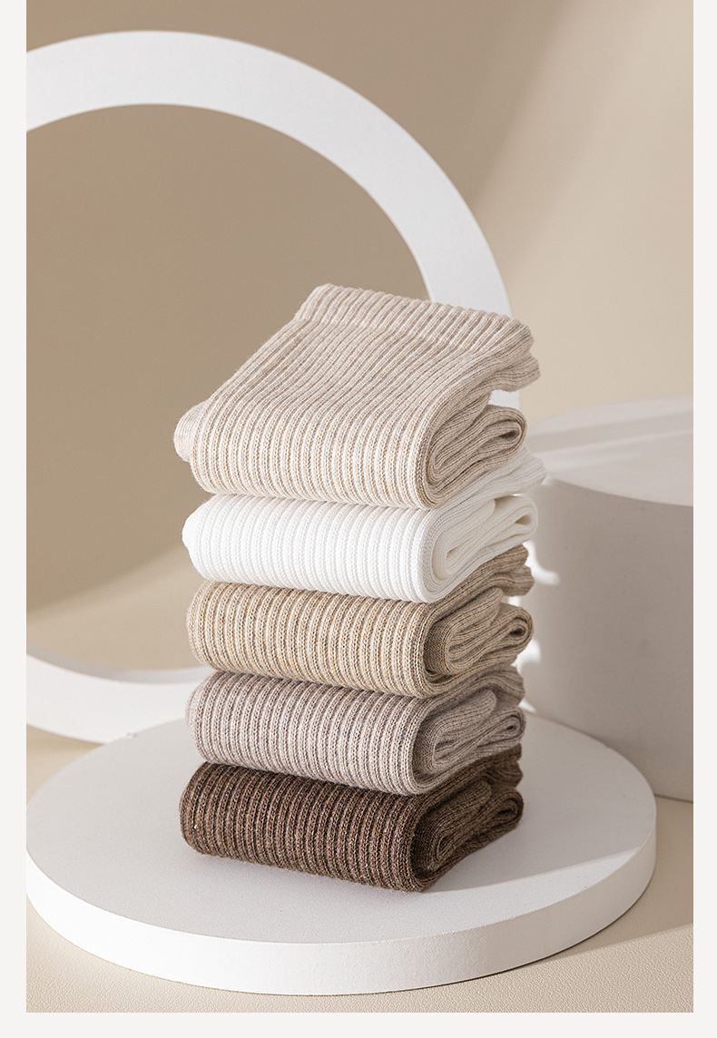 「5双装!高颜值」袜子棉女士秋冬季中筒无骨吸汗白色长筒运动休闲袜配饰