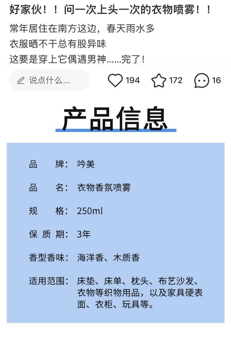 「9.9元包邮!两款香型」吟美衣物香氛喷雾除味剂 衣柜香水防臭祛味空气清新剂香氛精油