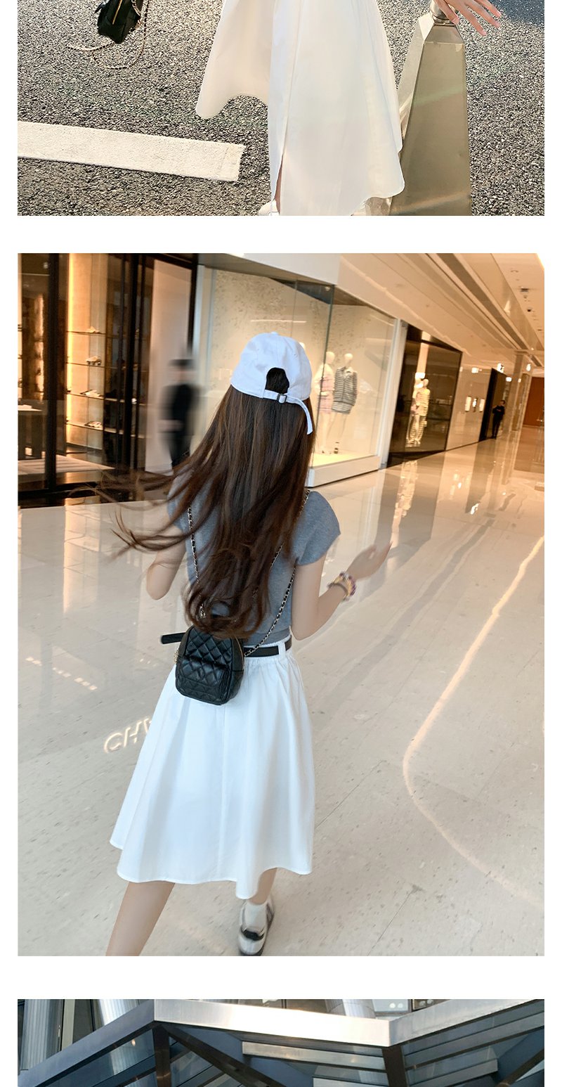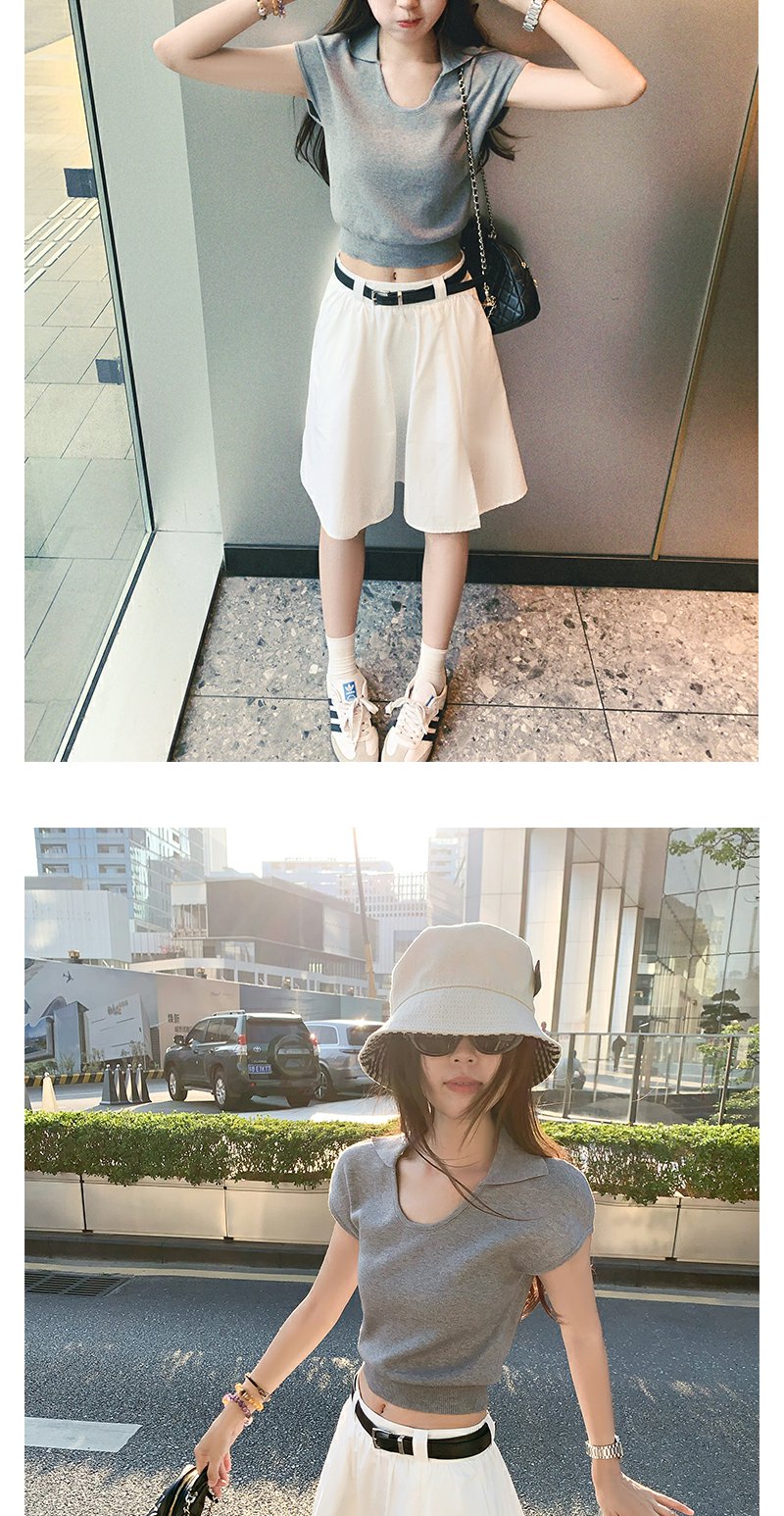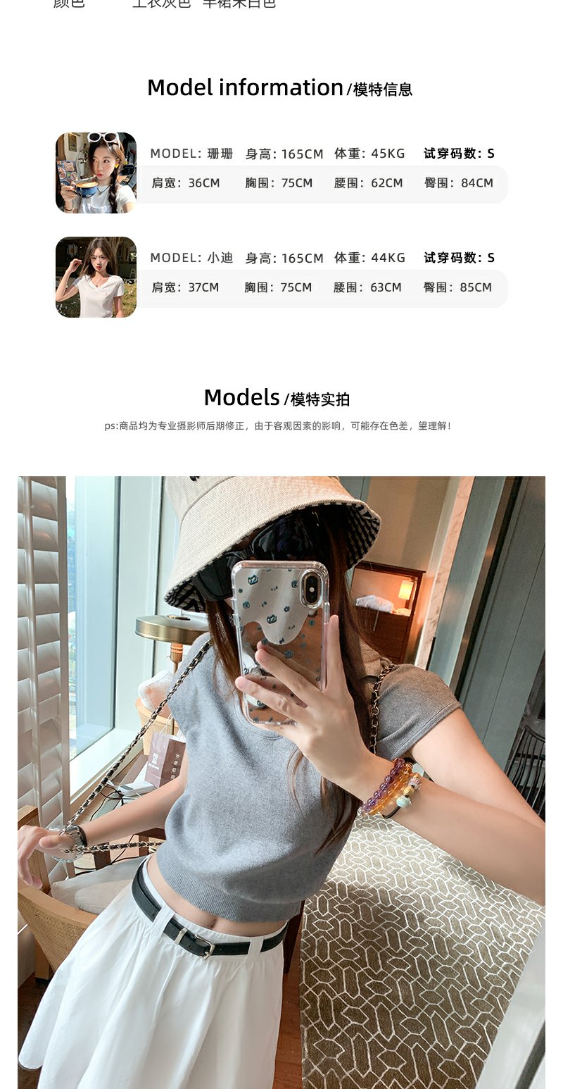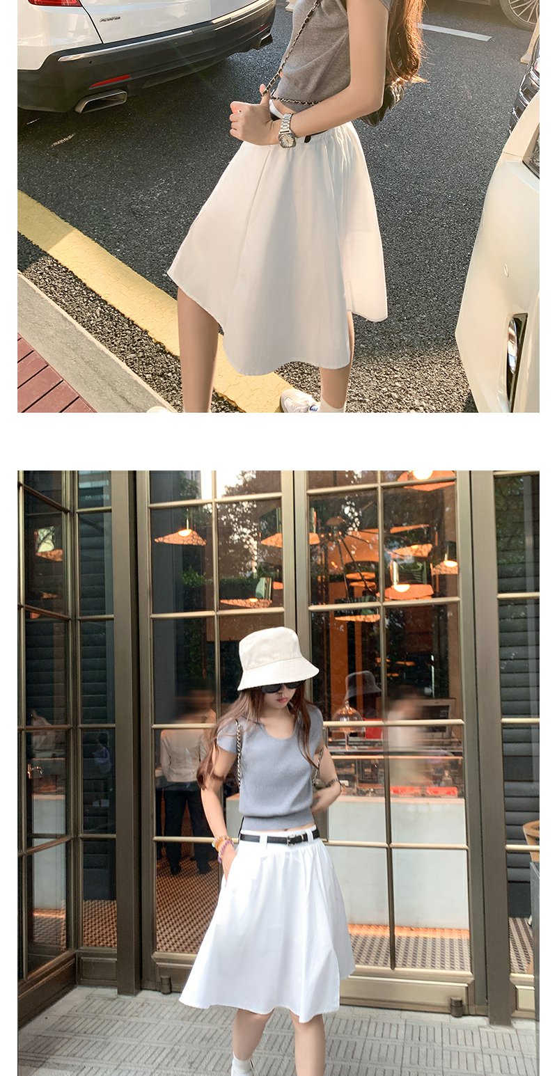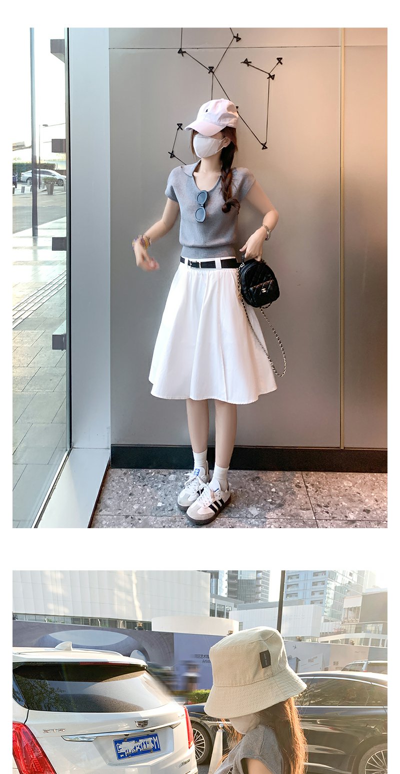 <曾小咸推荐>灰色u领针织正肩短袖t恤女+白色半裙