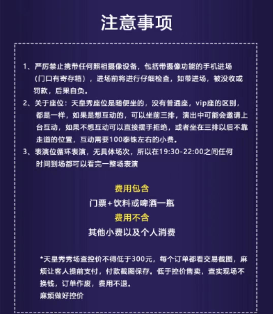 (想看多久都可以),表演不清场。最晚入场时间22:30