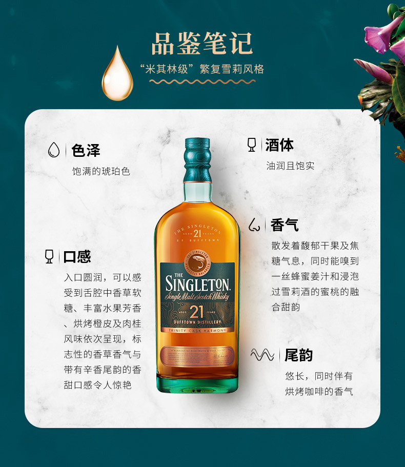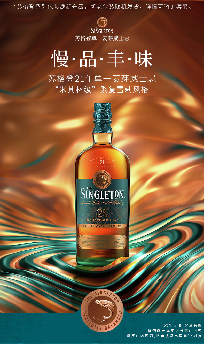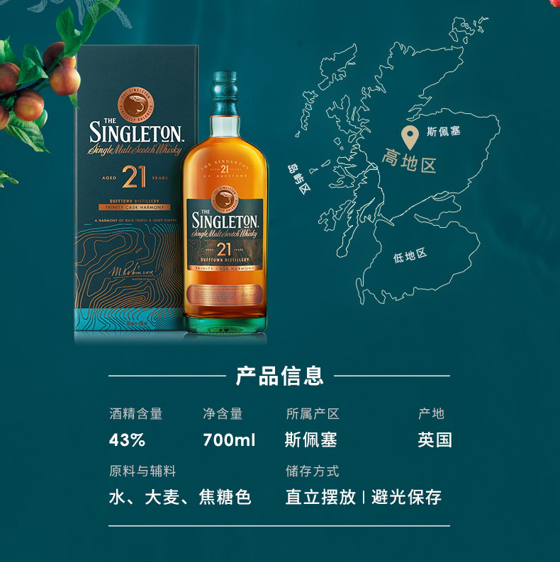 苏格登21年 单一麦芽苏格兰威士忌700ml