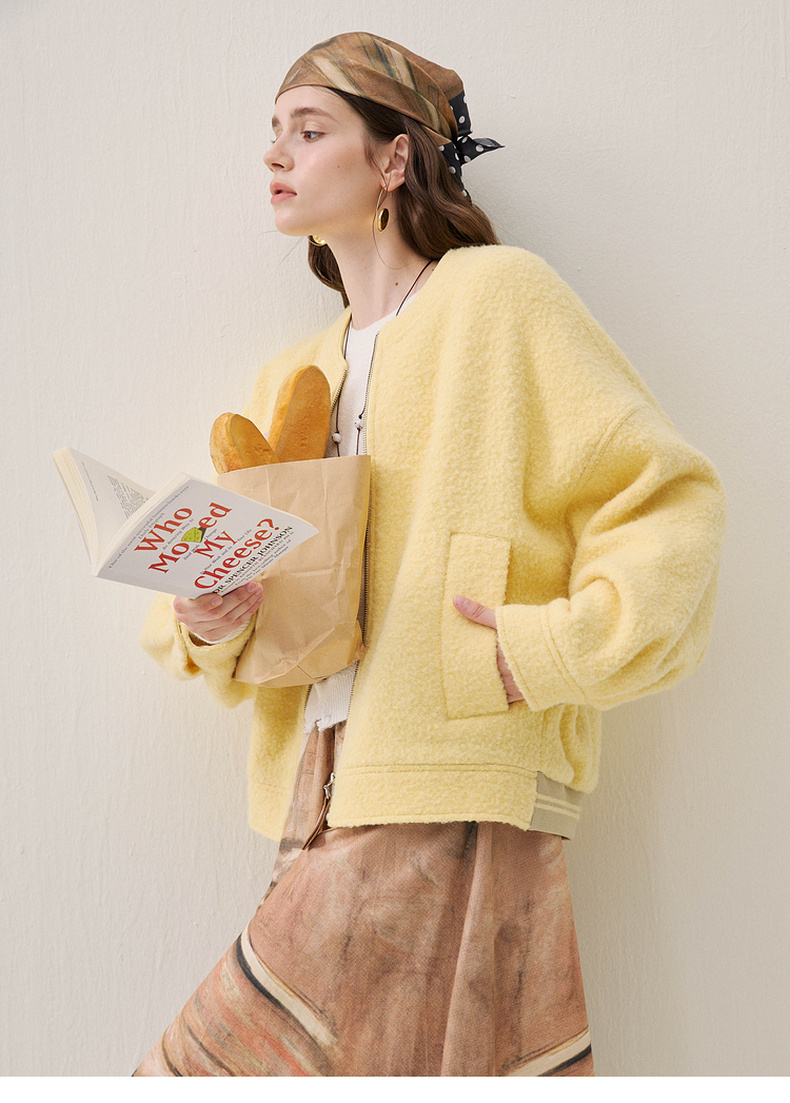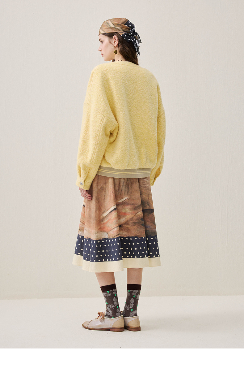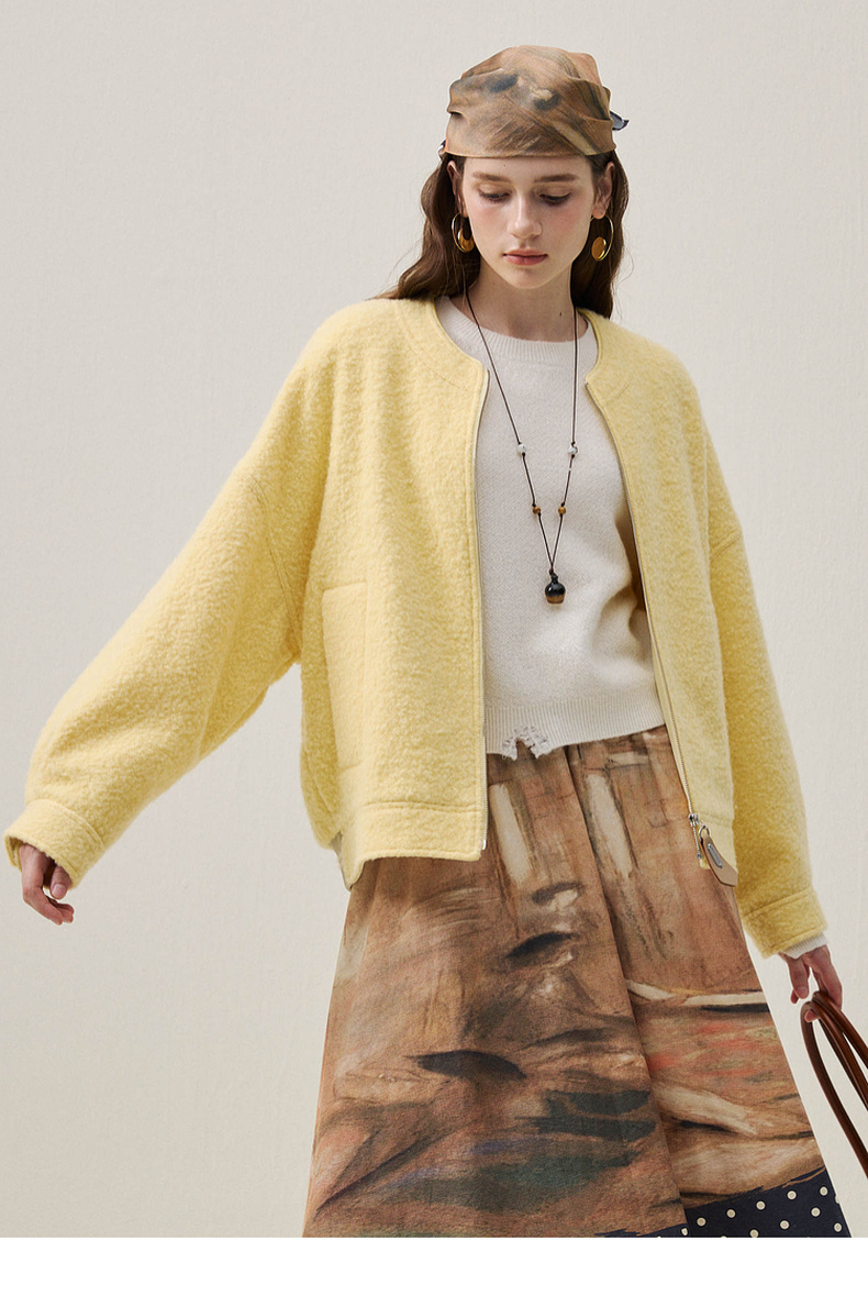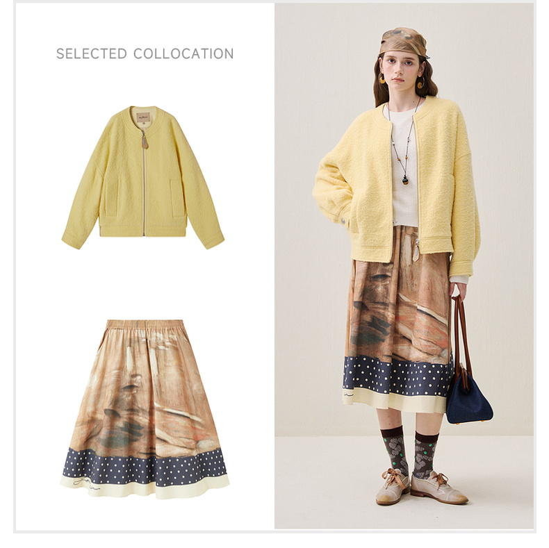 谜底短款大衣长袖2025冬季新品柔软舒适后幅拼接印花女254MD1651
