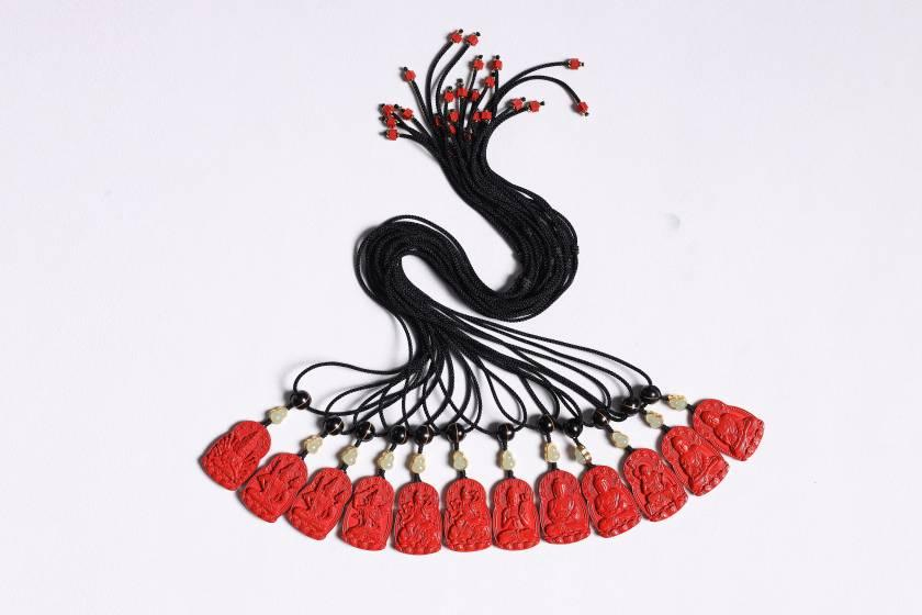 | 配件 | 朱砂十二生肖八大,沙金玉 石葫芦,紫光檀双色珠,朱 砂六字真言六角珠,铜飞碟 |