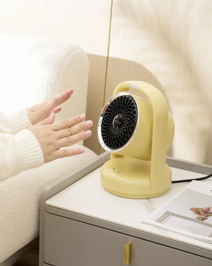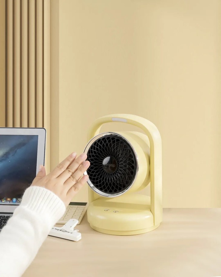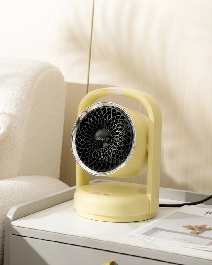 这款小派派语音速热暖风机设计小巧便捷,可以摆在办公桌上,小小的一个,也不会很占地方。