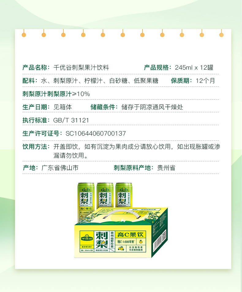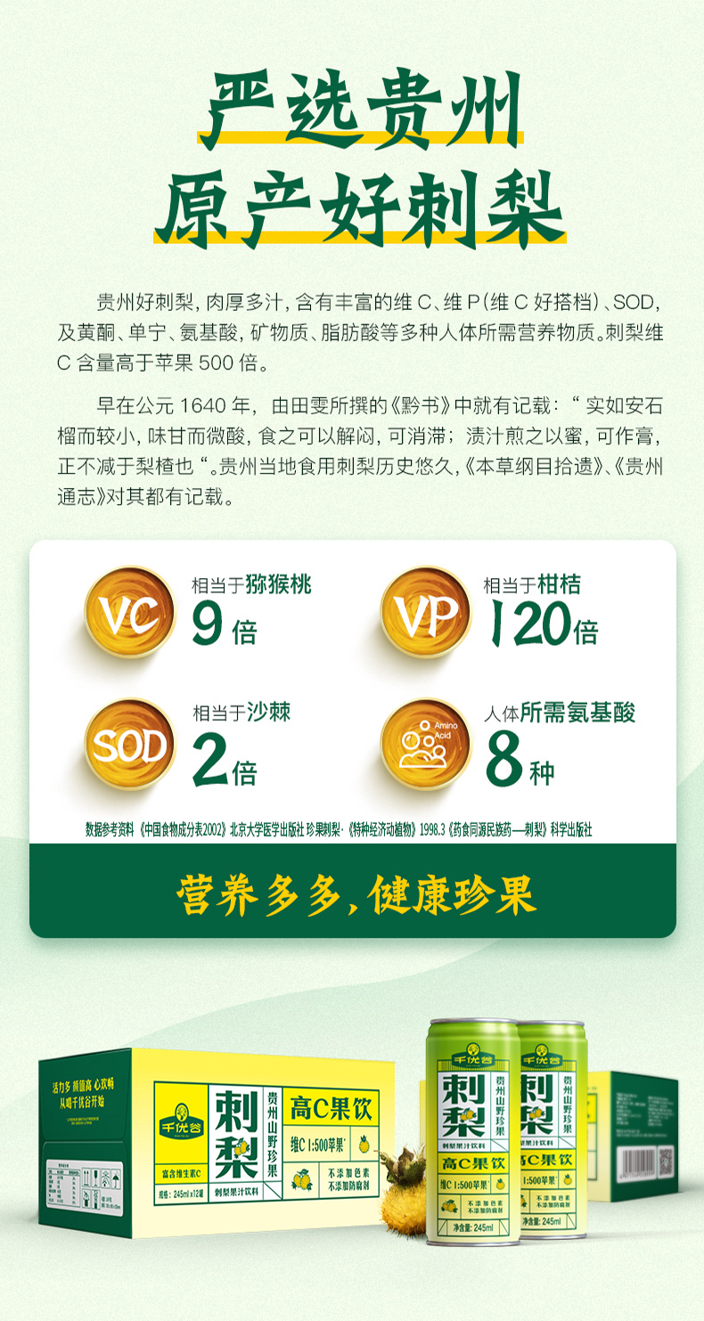 【黔南州帮扶】贵州千优谷刺梨果汁饮料罐装245ML*12罐