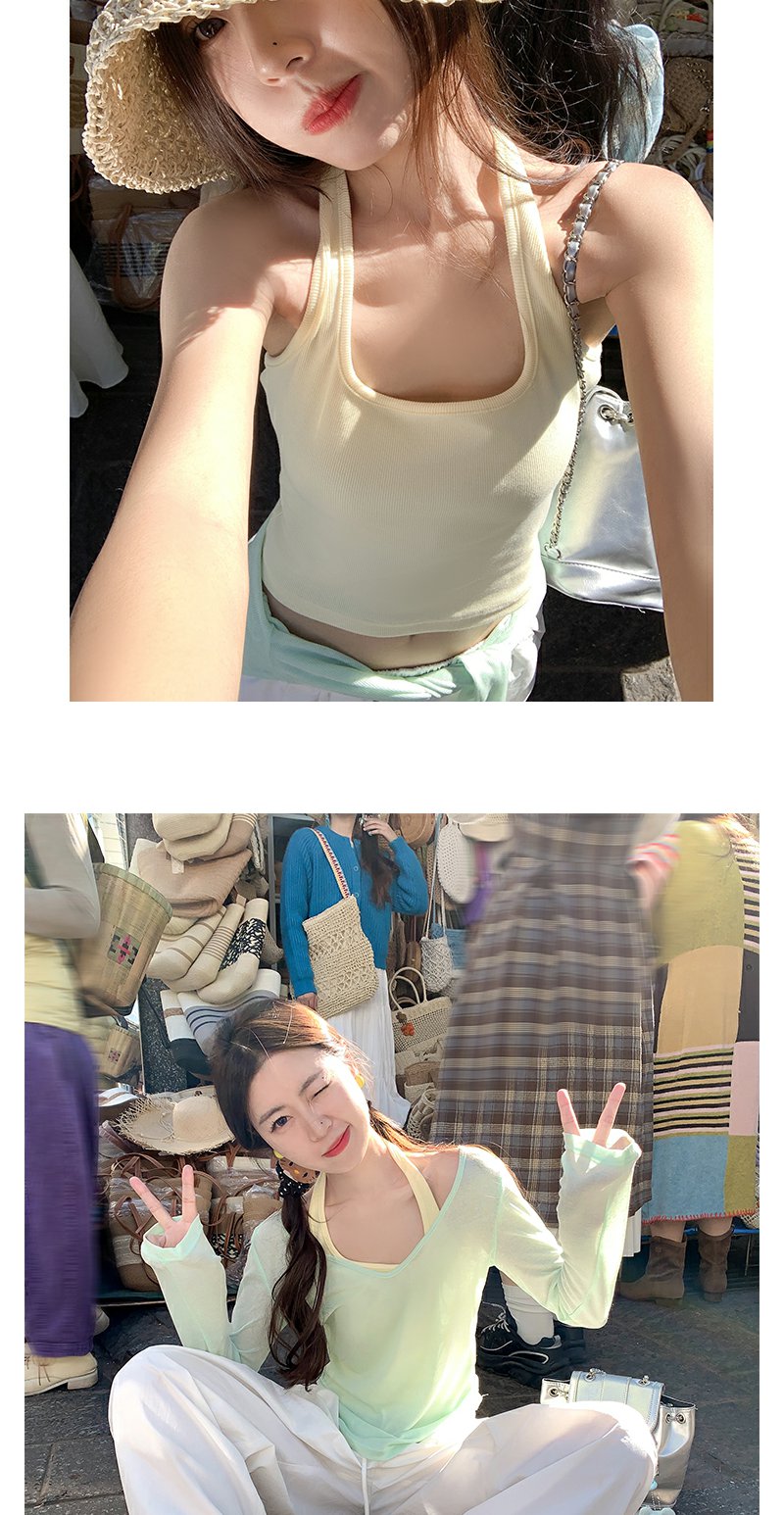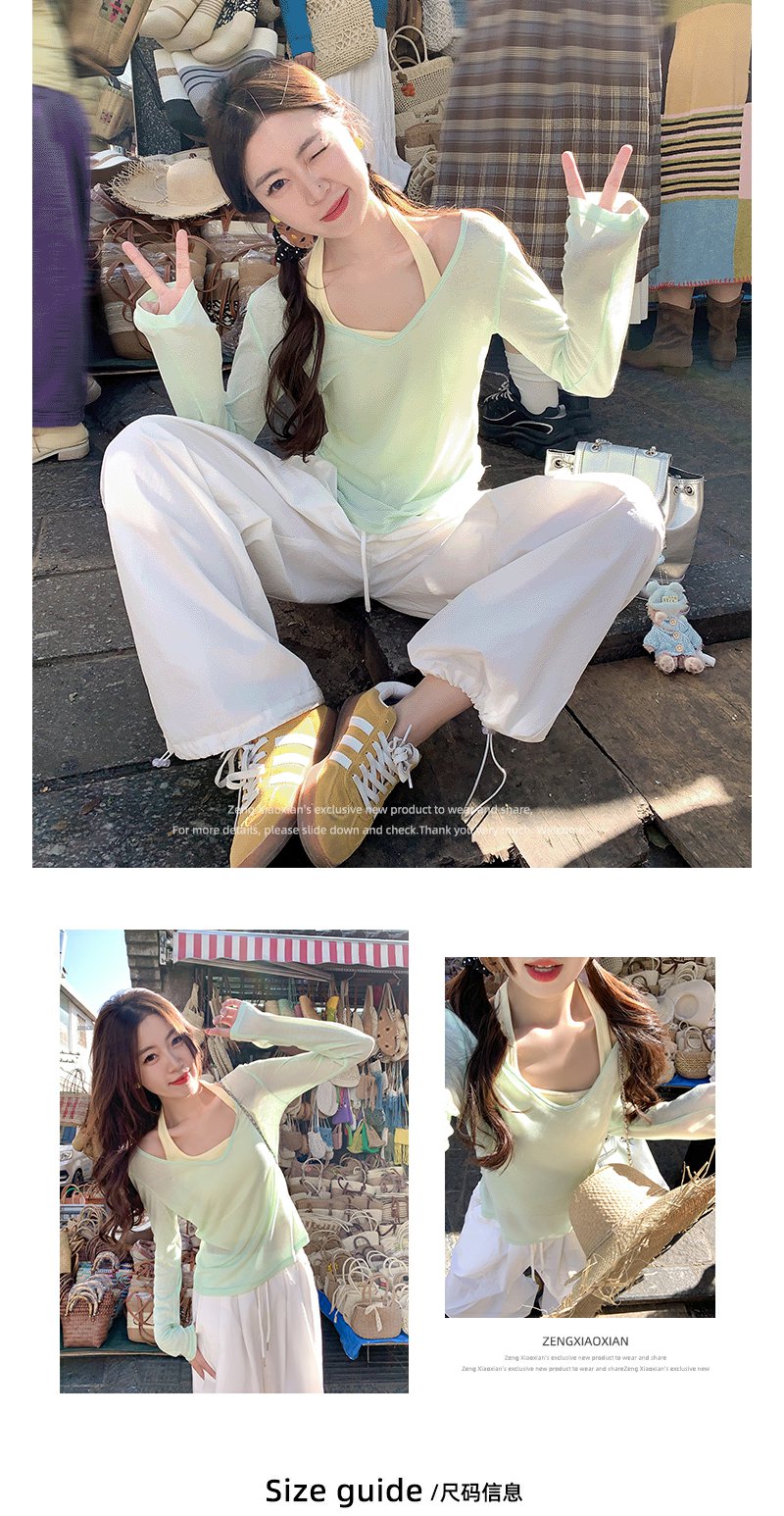 <曾小咸推荐>韩系小清新绿色防晒罩衫挂脖背心两件套【预售3-15天发货】