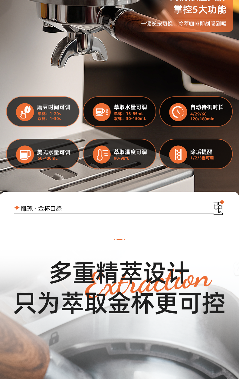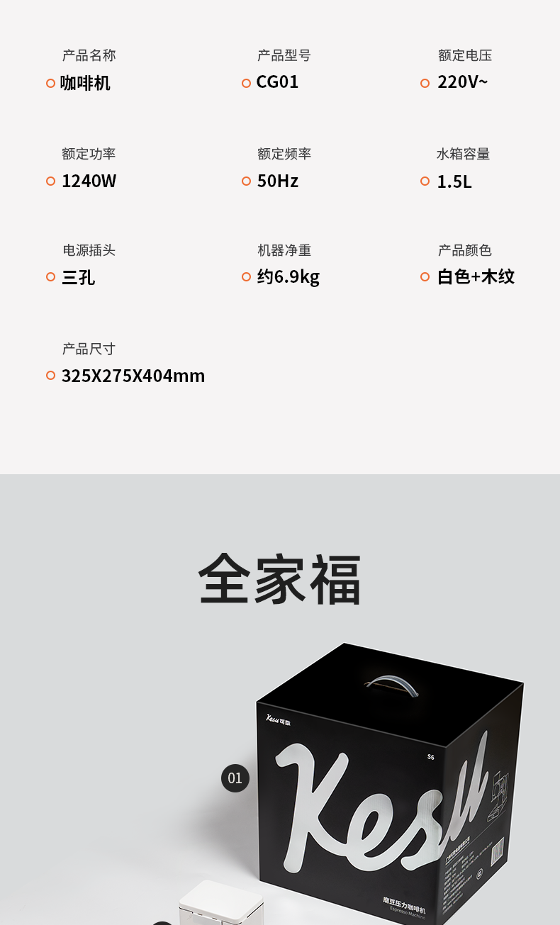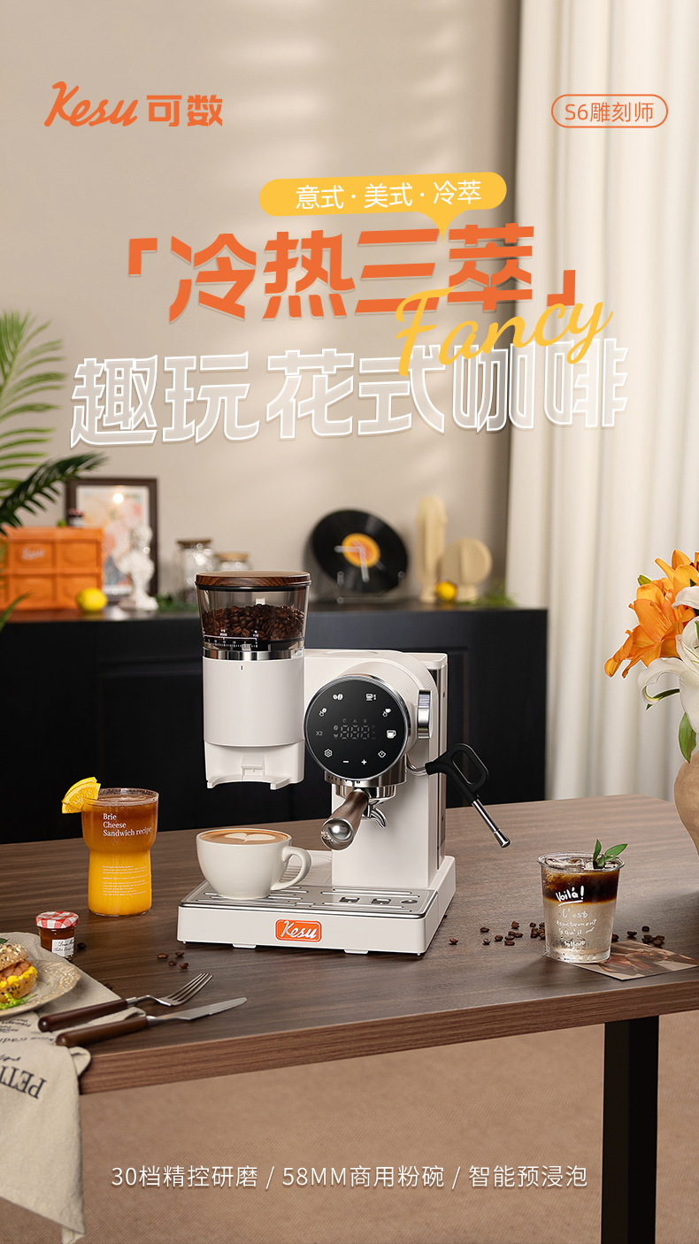 kesu可数S6咖啡机冷热三萃小型家用意式研磨一体机