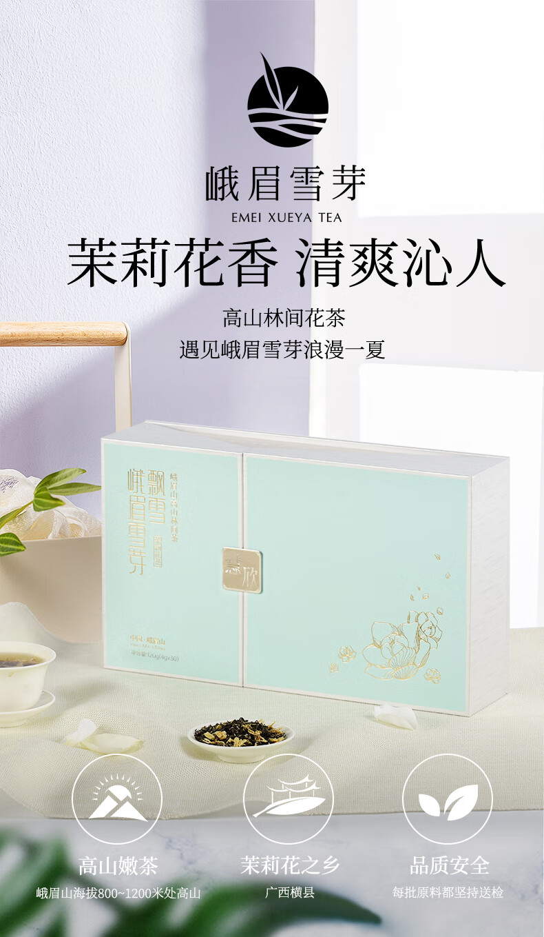 峨眉雪芽飘雪茉莉花茶特级慧欣浓香型120g礼盒装