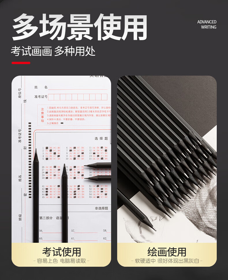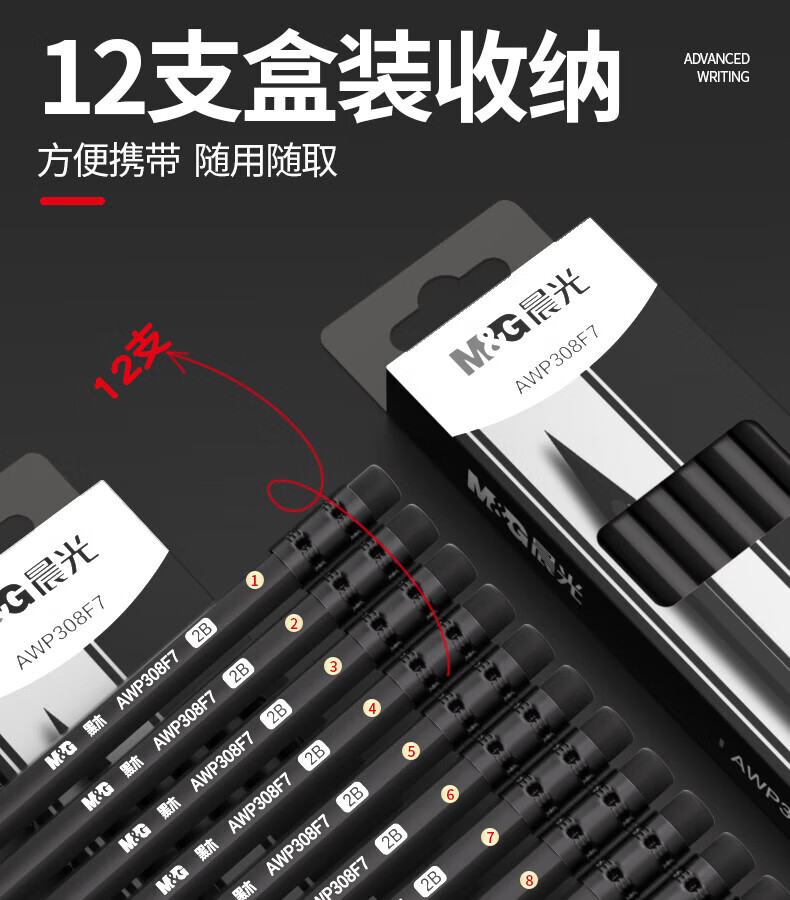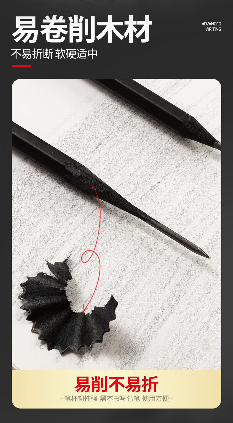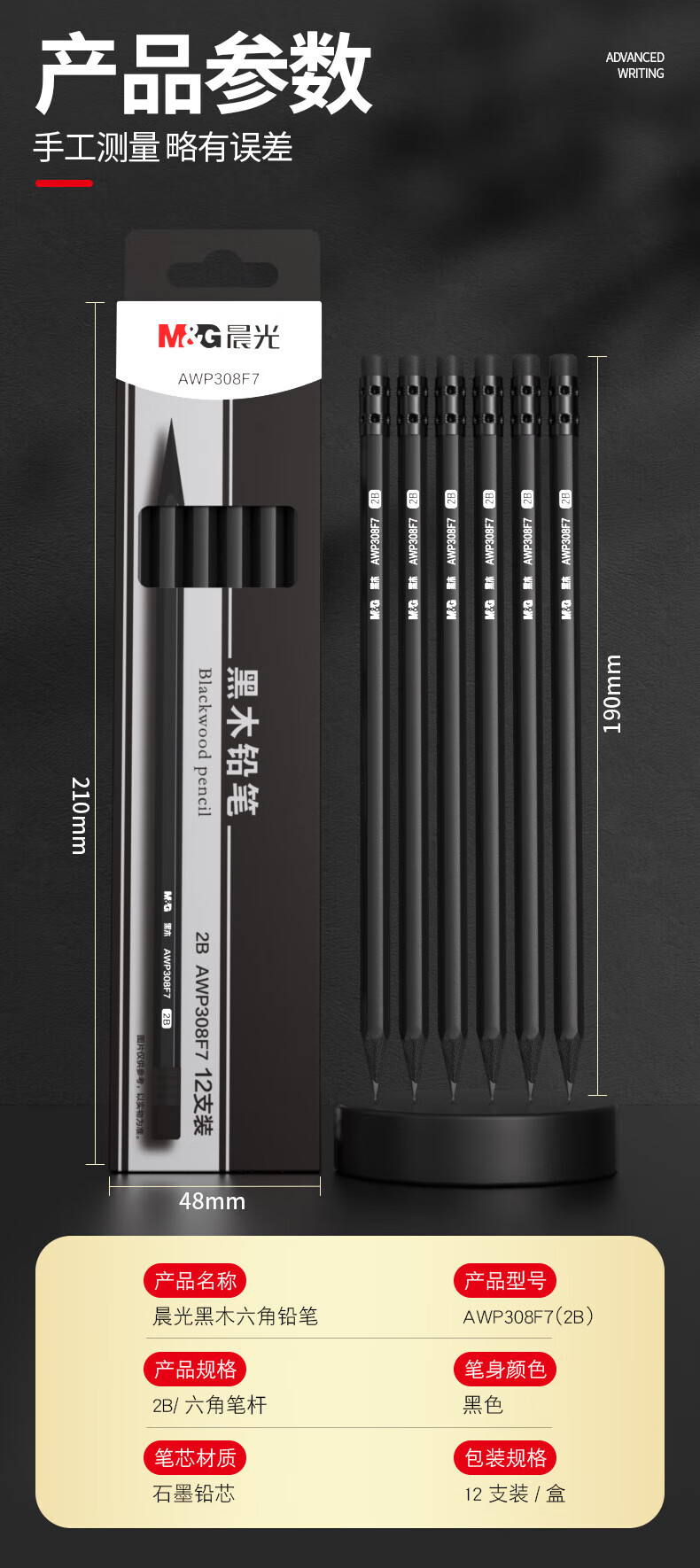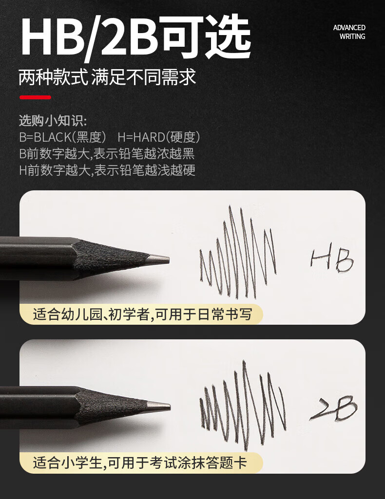 晨光2BHB铅笔黑木抽条六角木杆铅笔带橡皮头学生书写美术素描绘图12支(规格自选)